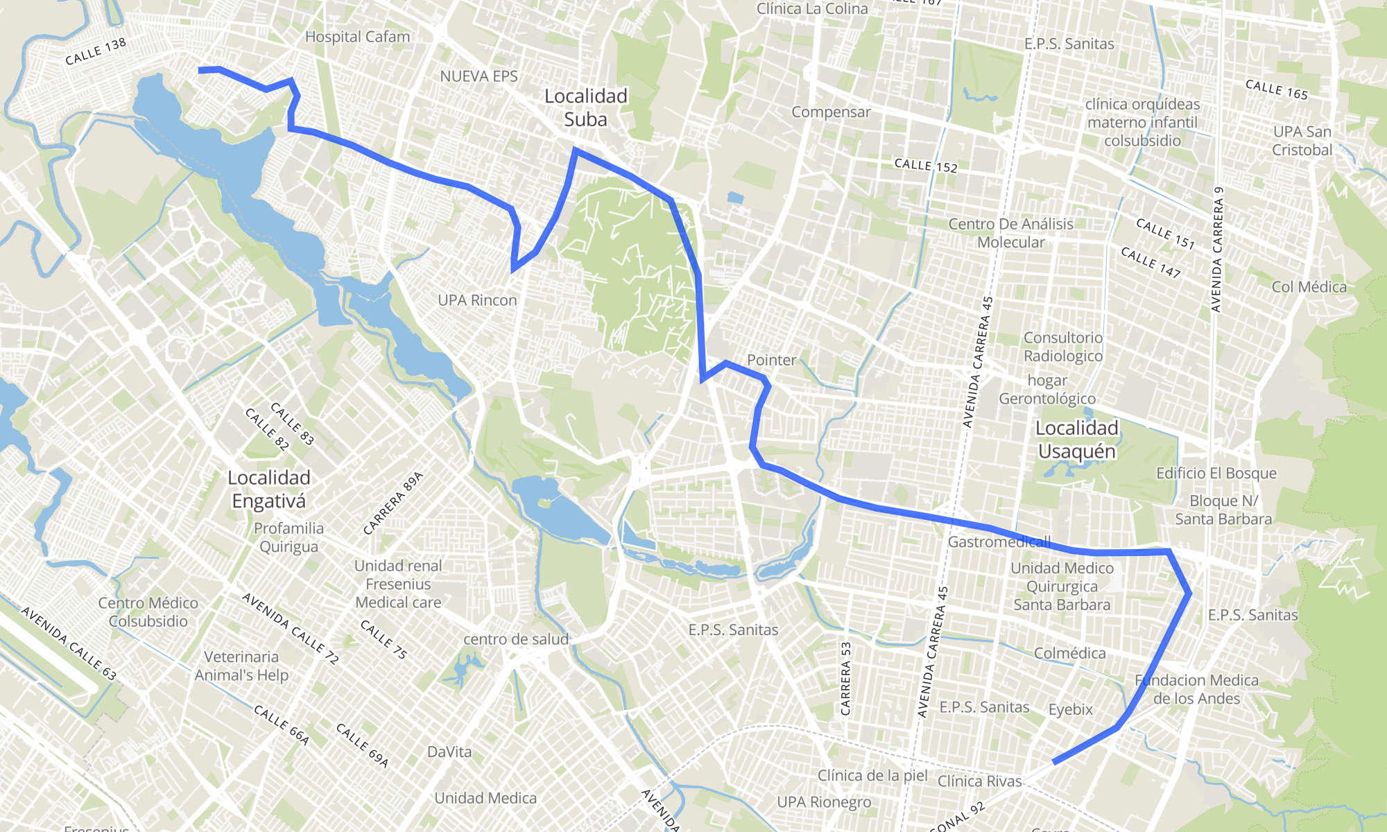 | Parque El Nogal (Kr 140 - Cl 132a) | Br. Rincón Del Chicó (Ak 9 - Cl 102) |