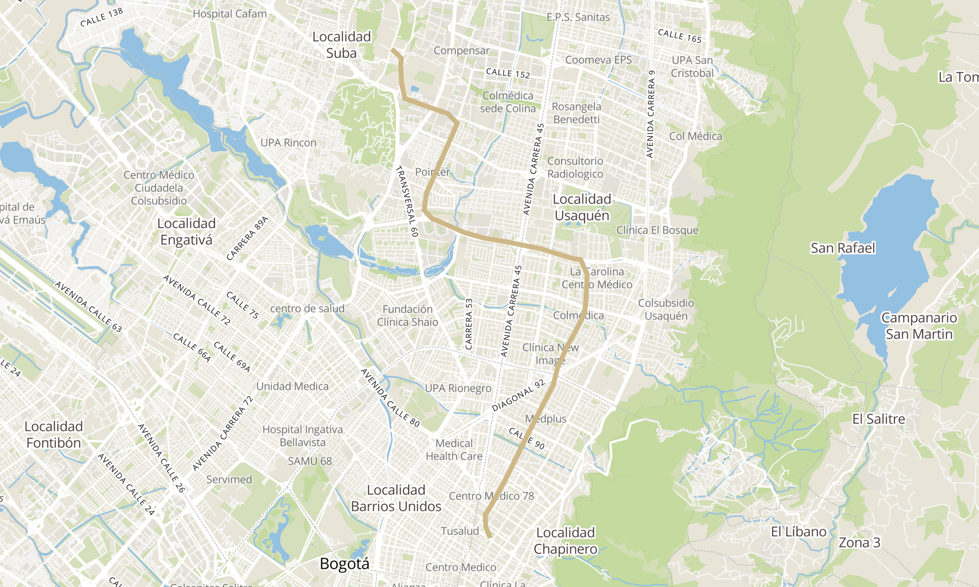 | Universidad Pedagógica Nacional (Ac 72 - Ak 11) | Br. Casa Blanca I (Kr 80 - Cl 146f) |