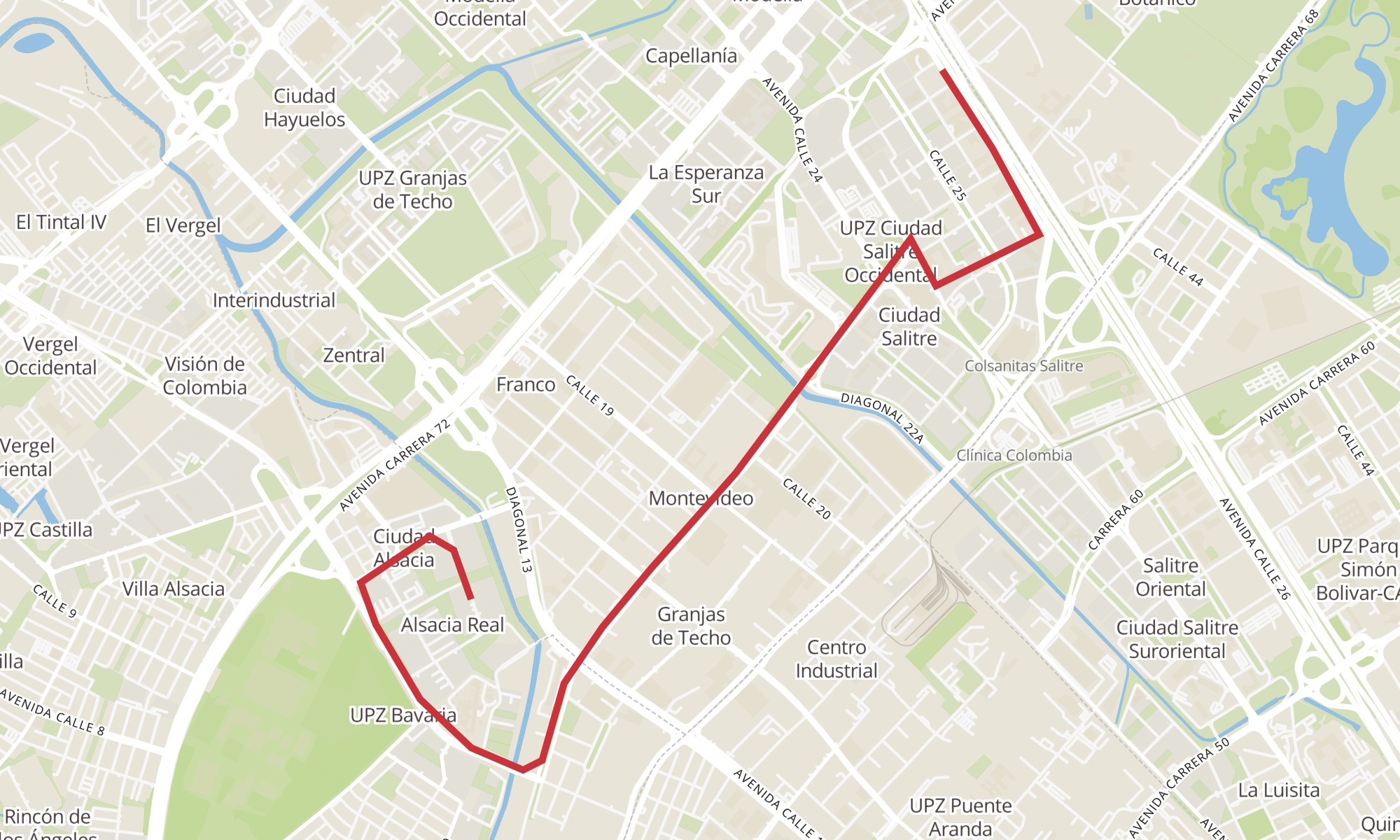 | Estación Avenida Rojas (Ac 26 - Kr 69d Bis) (B) | Br. Santa Rita De Alsacia (Cl 12c - Kr 71b) |