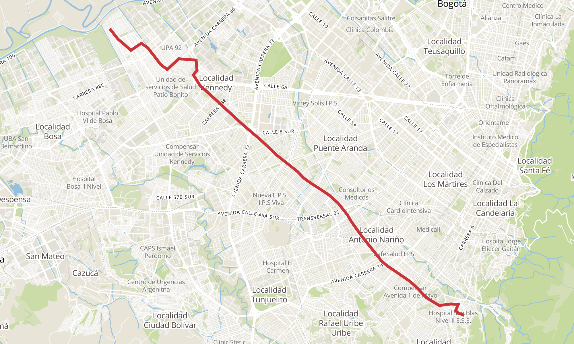 | Br. El Sosiego (Cl 17 Sur - Kr 6 Este) | Br. El Jazmín (Cl 42f Sur - Kr 98c Bis) |