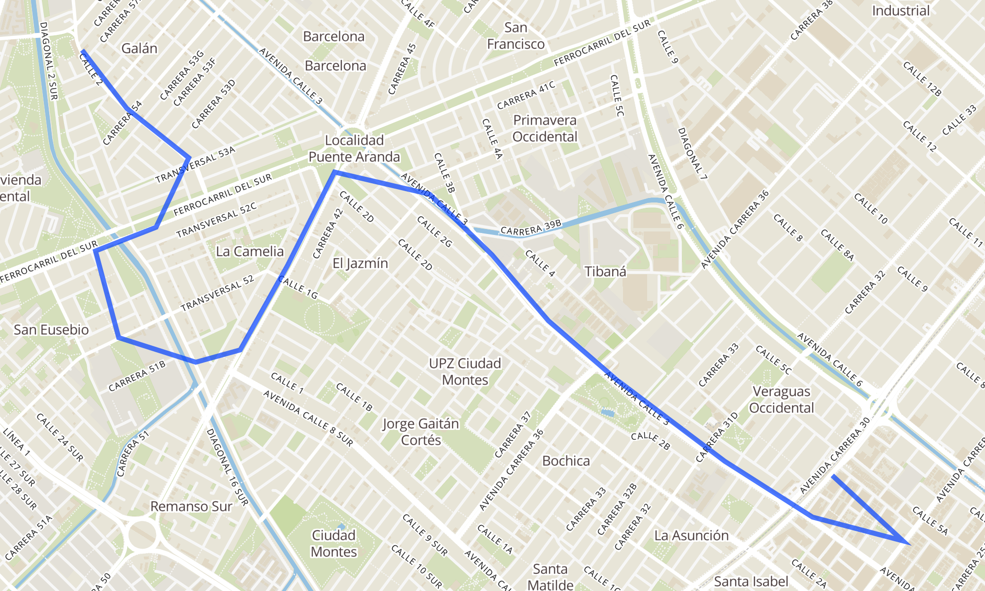 | Estación Comuneros (Av. NQS - Cl 4a) | Br. Galán (Dg 2 - Kr 57a) |