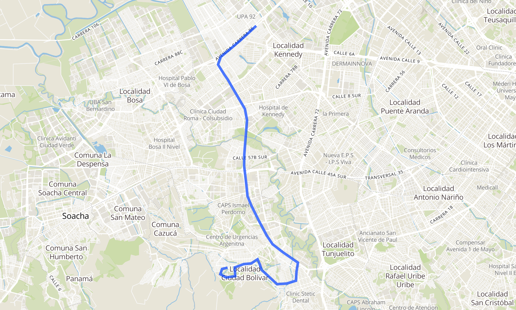 Sentido: Br. Jerusalén Las Brisas (Kr 40 - Cl 76 Sur) ‎→ Br. María Paz (Av. C. De Cali - Cl 1a Sur) (A) (44 paradas)
