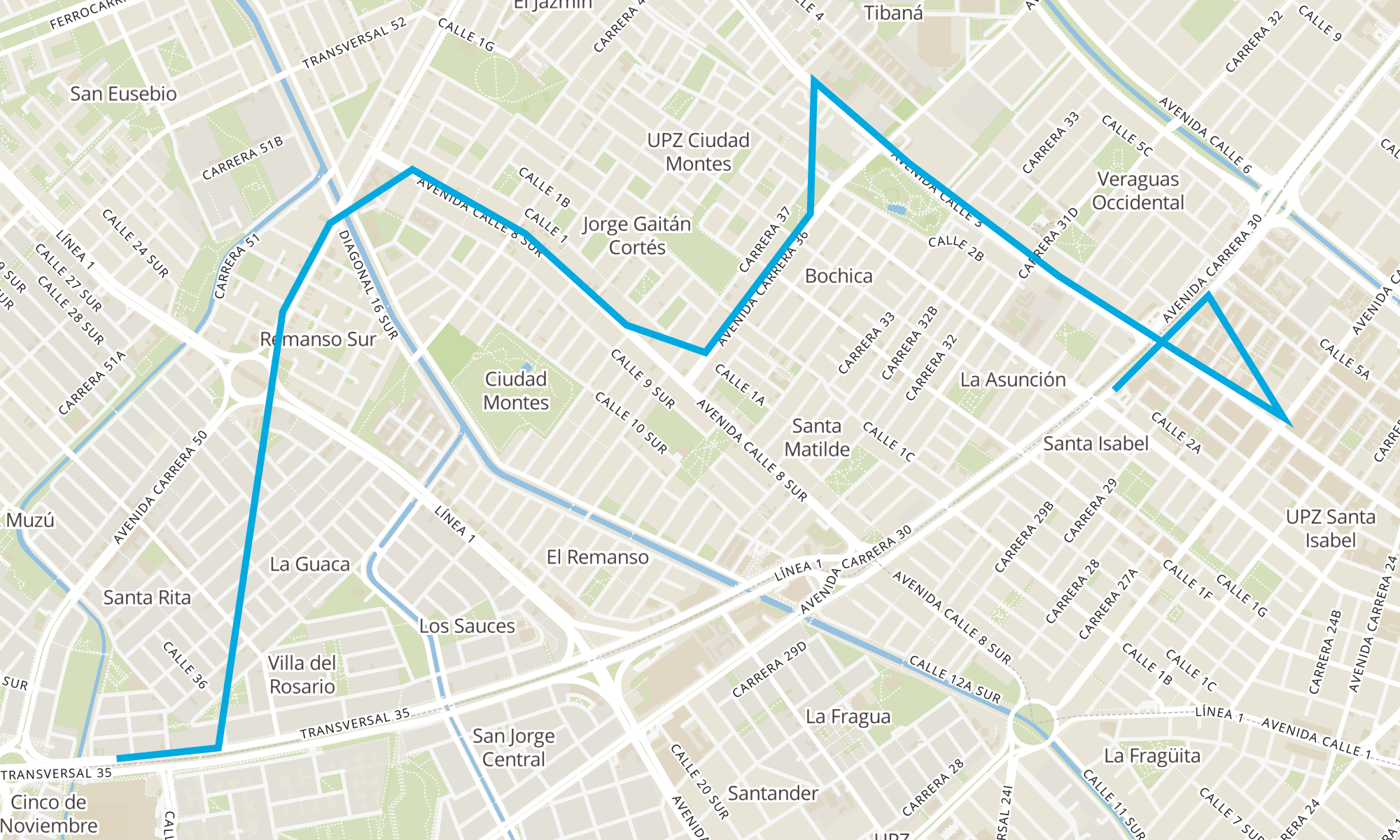 | Br. Santa Isabel (Av. NQS - Cl 2) | Estación NQS - Calle 38 Sur (Auto Sur - Dg 38a Sur) |