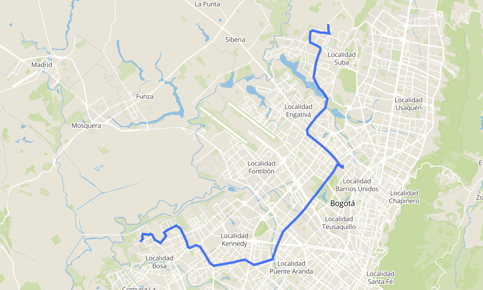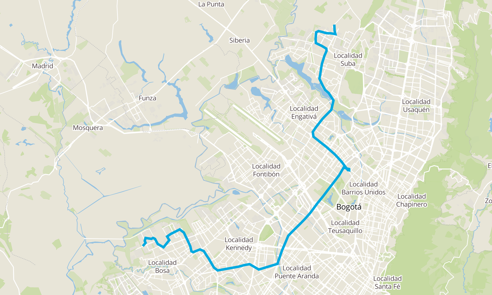 | Clínica Juan N. Corpas (Av. Corpas - Cl 159a) | Br. San Bernardino XIX (Kr 95a - Cl 74 Sur) |