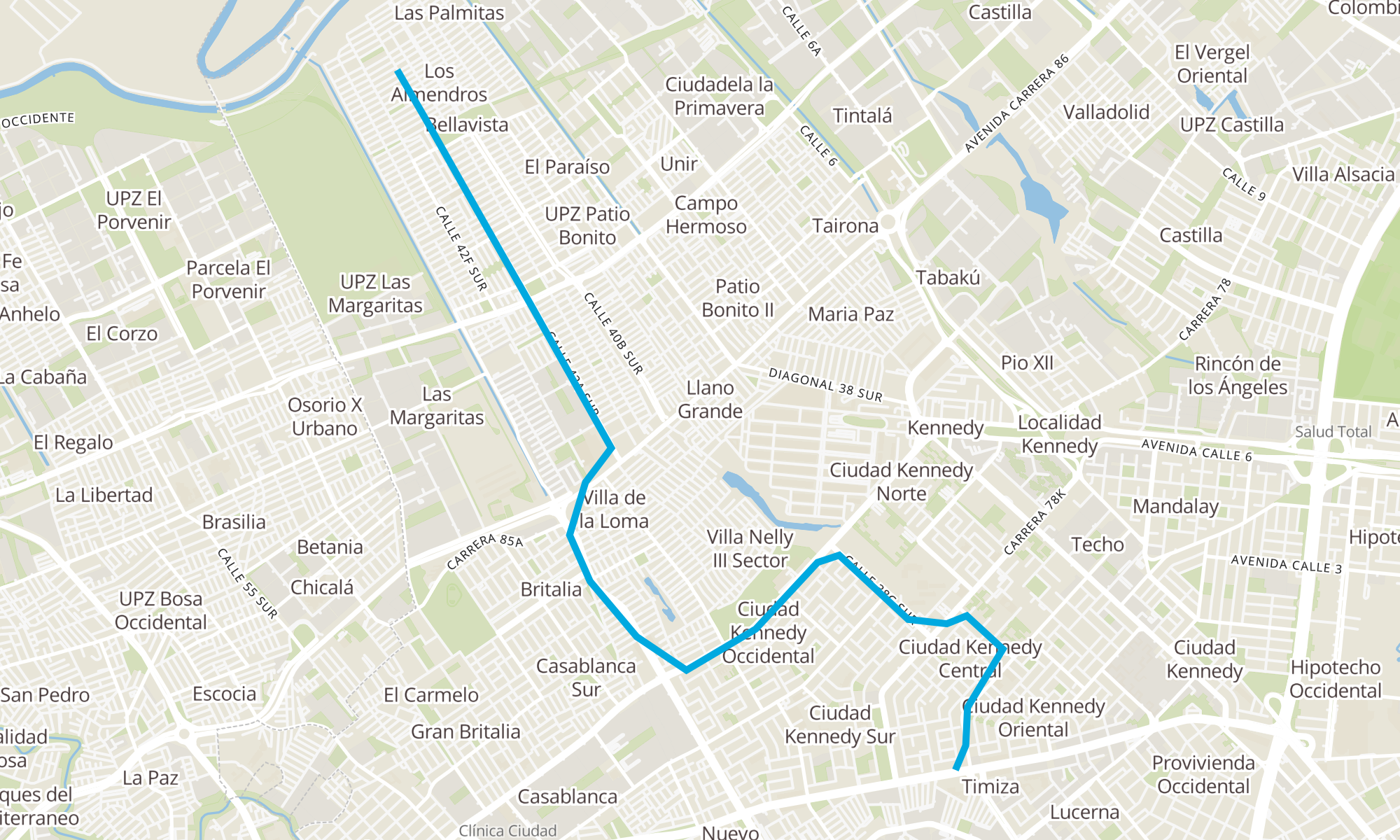 | Br. La Riviera (Cl 42a Sur - Kr 98c Bis) | Hospital Occidente De Kennedy (Av. 1 De Mayo - Cl 40b Sur) (B) |