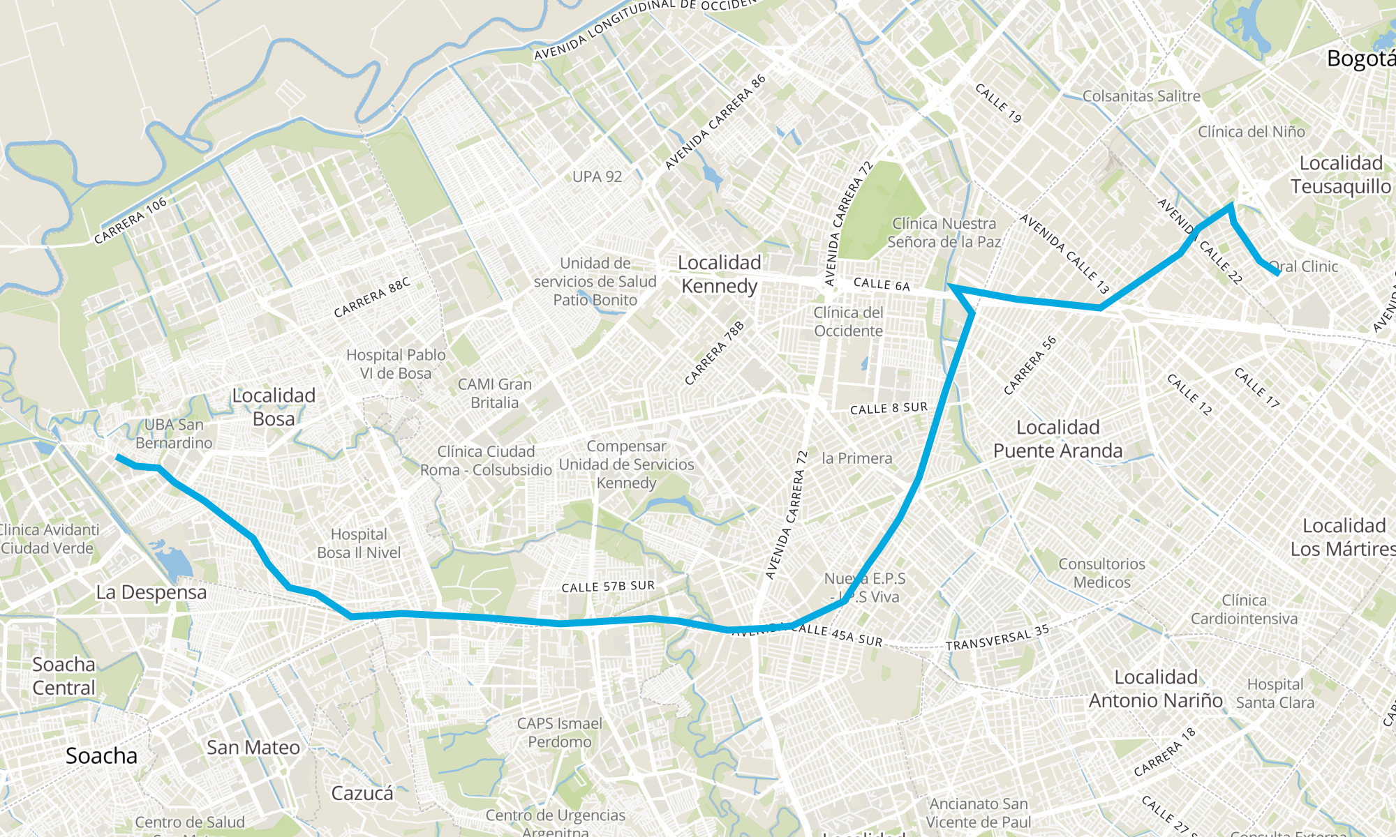 | Corferias (Ak 40 - Cl 24a) | Br. Bosa San José (Kr 80i - Cl 85b Sur) |