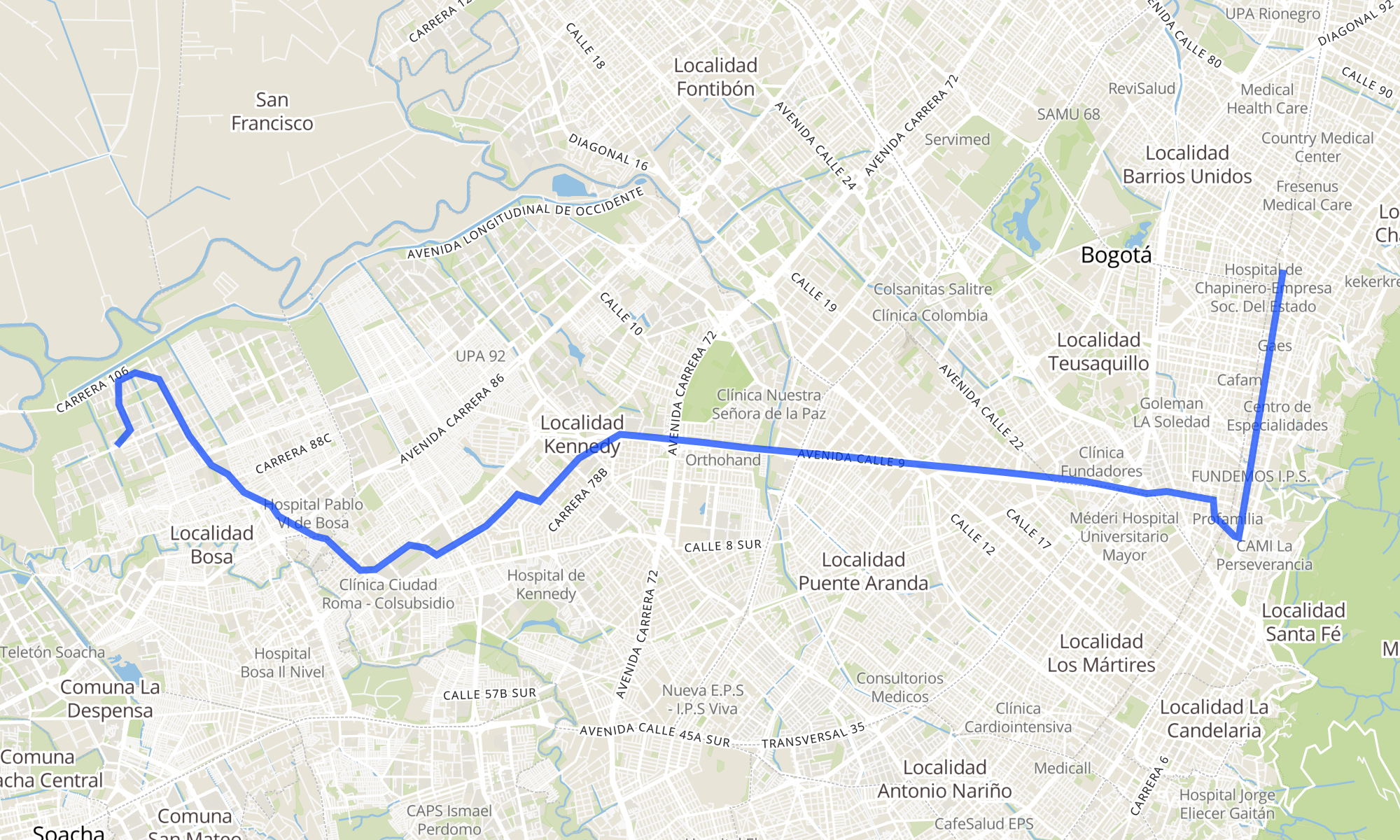 | Centro Cosmos 64 (Ak 13 - Cl 64) (B) | Br. San Bernardino XIX (Kr 95a - Cl 74 Sur) |