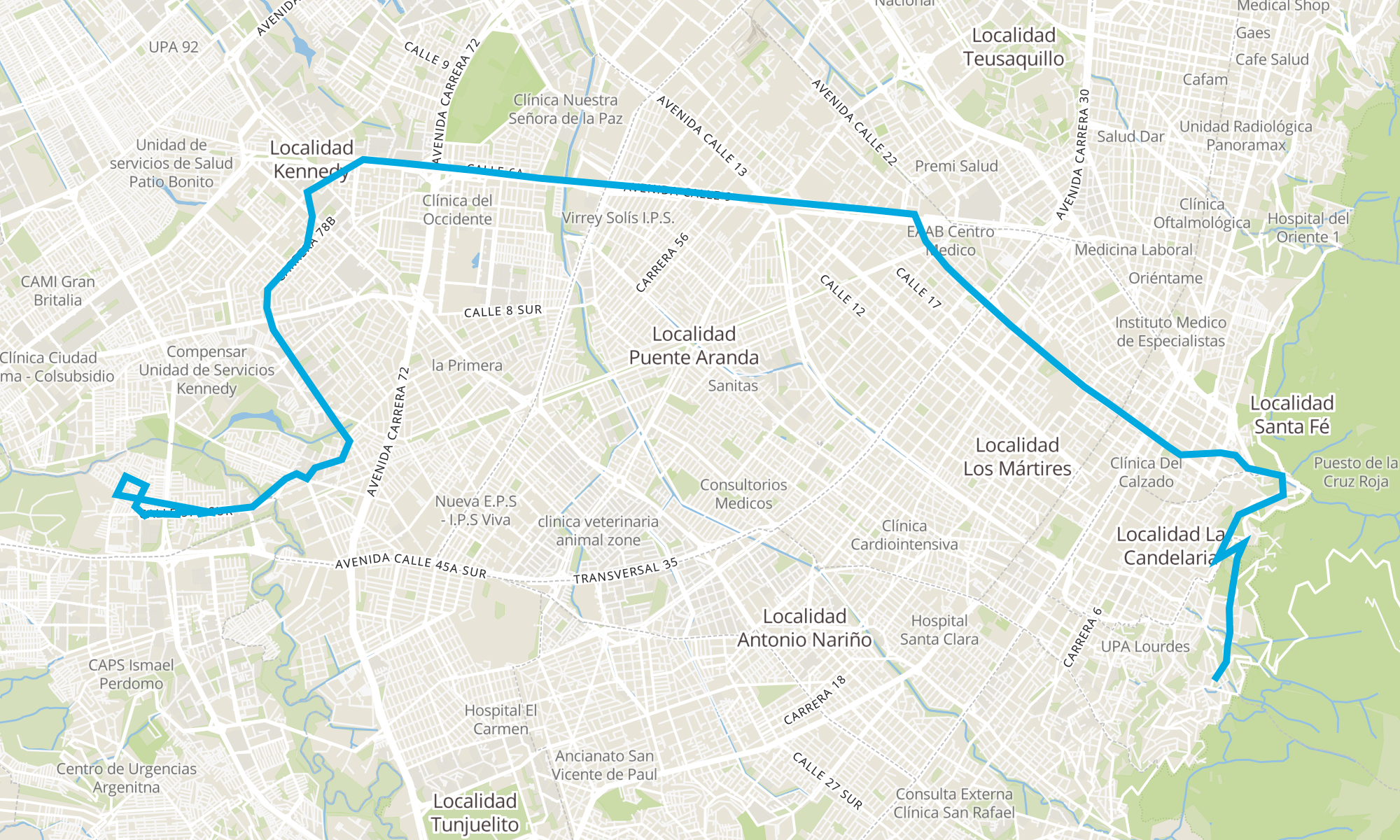 | Br. Los Laches (Dg 3c - Kr 8 Este) | Br. Villa Del Río II Sector (Cl 57b Sur - Kr 64b) |