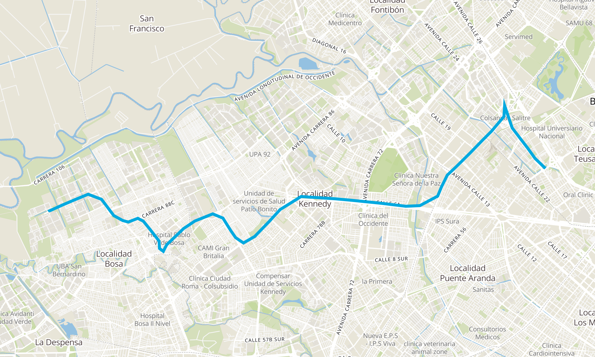 | Embajada De Los Estados Unidos (Ak 50 - Cl 24b) | Urbanización Parques De Bogotá - Caoba (Kr 95a - Cl 76 Sur) |