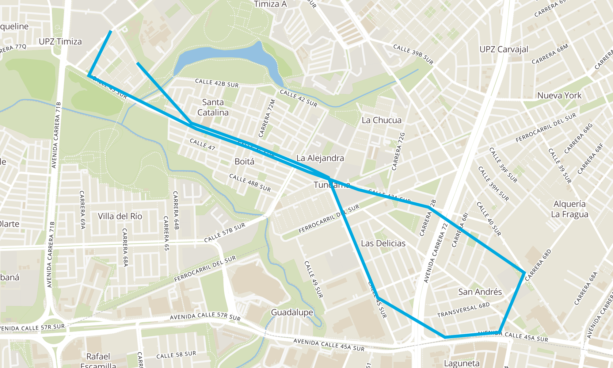 | Br. Timiza B (Kr 74 - Cl 43a Sur) | Br. Timiza A (Cl 43 Sur - Kr 73a) |