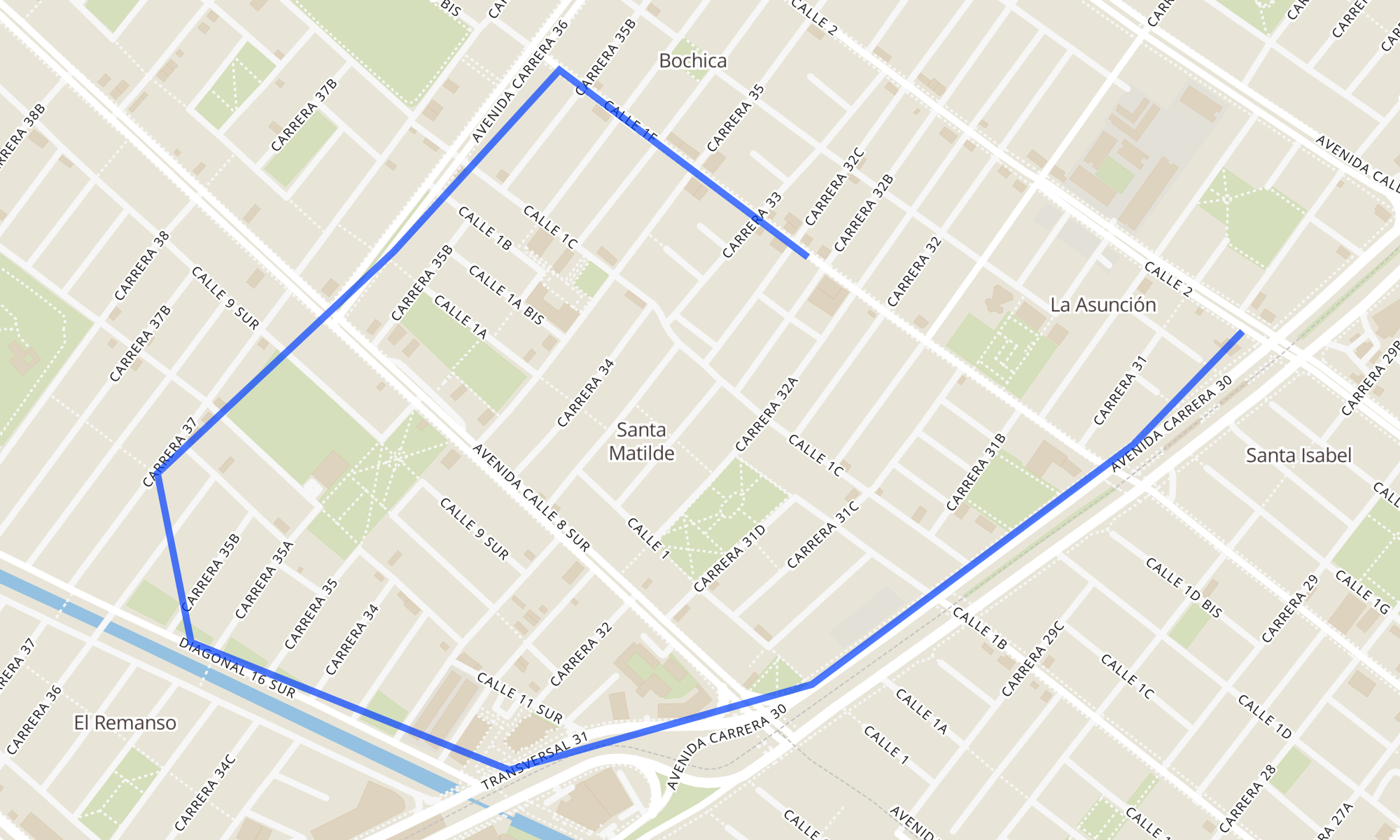 | Estación Santa Isabel (Cl 2 - Av. Nqs) | Ied Marco Antonio Carreño Silva (Cl 1f - Kr 32b) |