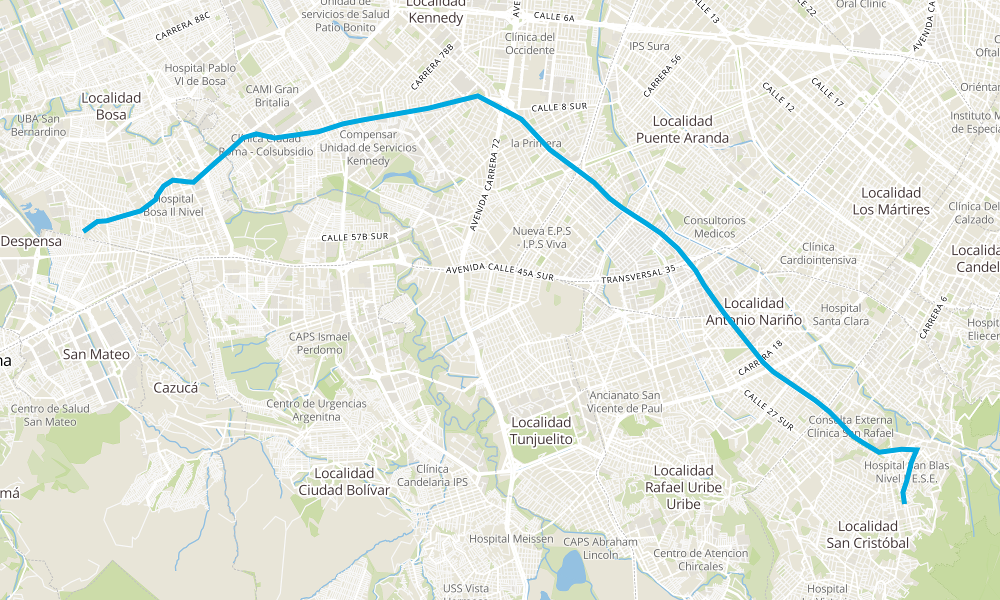 Sentido: Ied José Acevedo Y Gómez (Tv 4 Este - Dg 28 Bis B Sur) ‎→ Br. José María Carbonell (Cl 72b Sur - Kr 77i) (56 paradas)