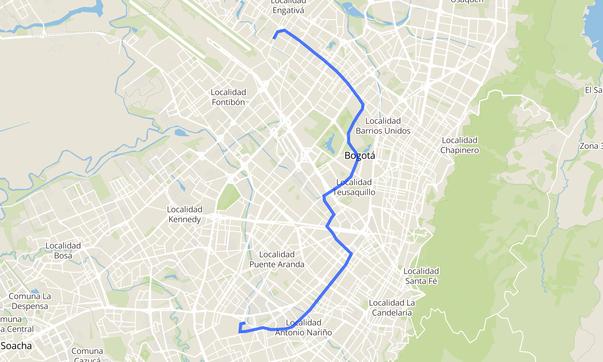 Sentido: Br. Florida Blanca (Kr 96 - Cl 68a) (B) ‎→ Br. Villa Mayor (Dg 39a Sur - Tv 40) (54 paradas)