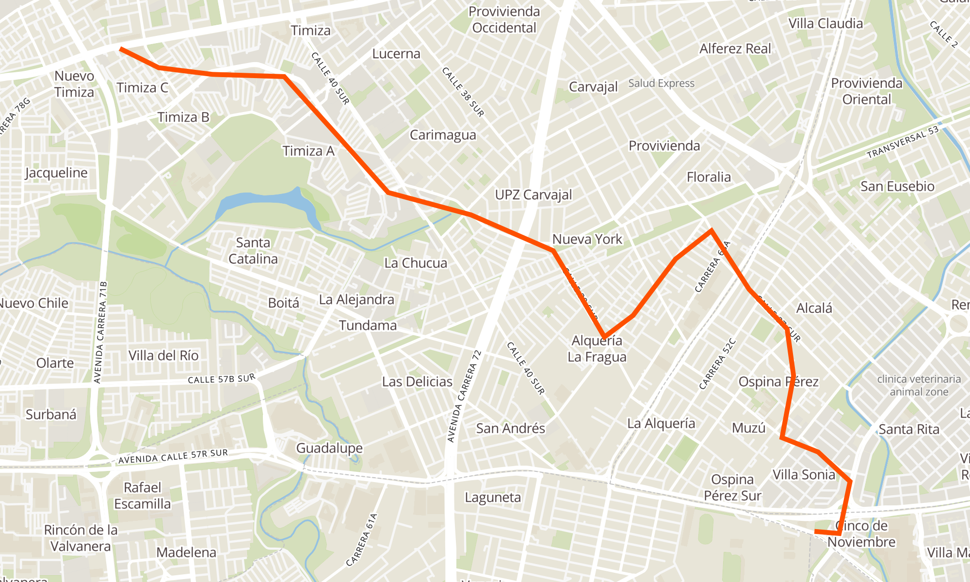 | Urbanización Pastrana (Av. 1 De Mayo - Cl 42a Sur) (A) | Estación General Santander (Dg 46 Sur - Kr 50 Bis A) |