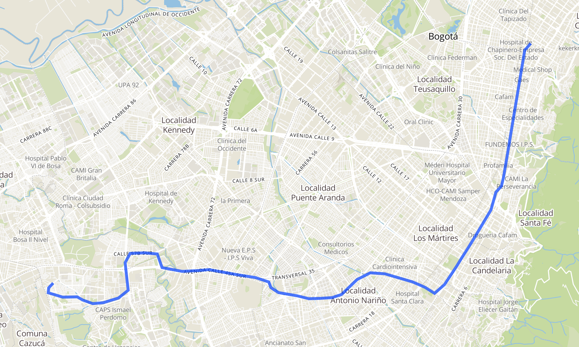 Sentido: Clínica Del Niño (Ak 11 - Cl 65) ‎→ Br. Quiba (Kr 76a - Cl 59a Sur) (62 paradas)