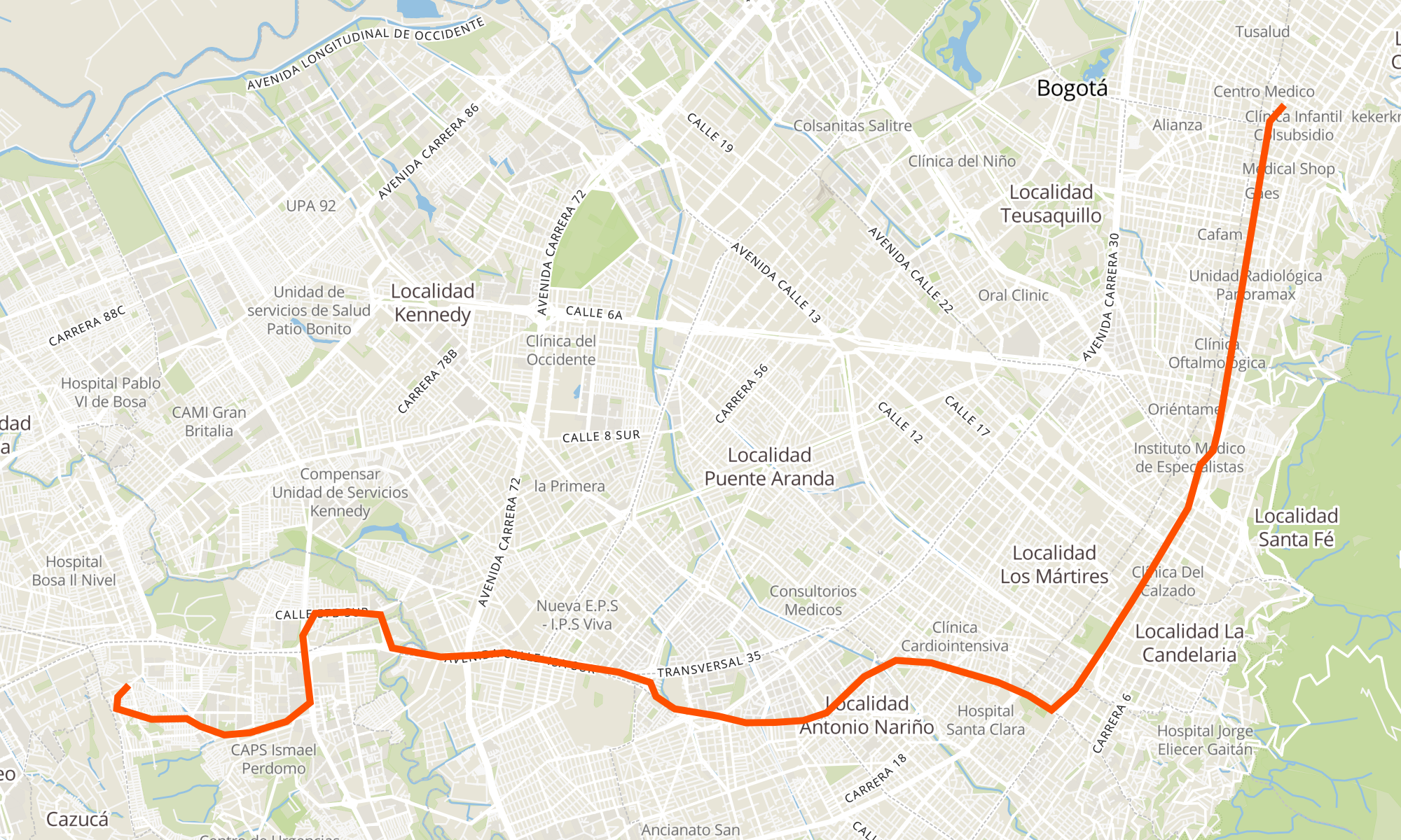 | Clínica Del Niño (Ak 11 - Cl 65) | Br. Quiba (Kr 76a - Cl 59a Sur) |