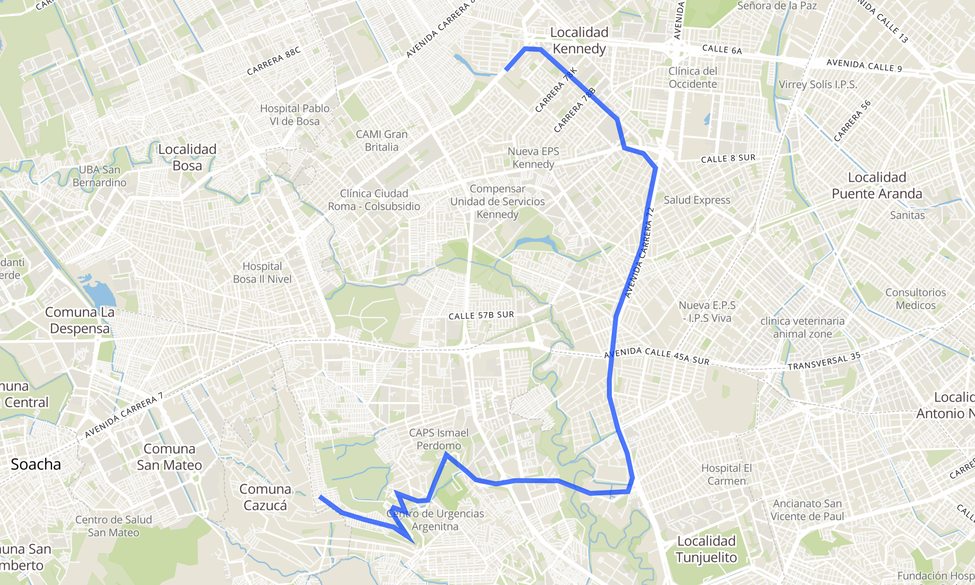 | Corabastos (Av. A. Mejía - Cl 36a Sur) | Br. Santo Domingo (Cl 68b Sur - Kr 77b) |