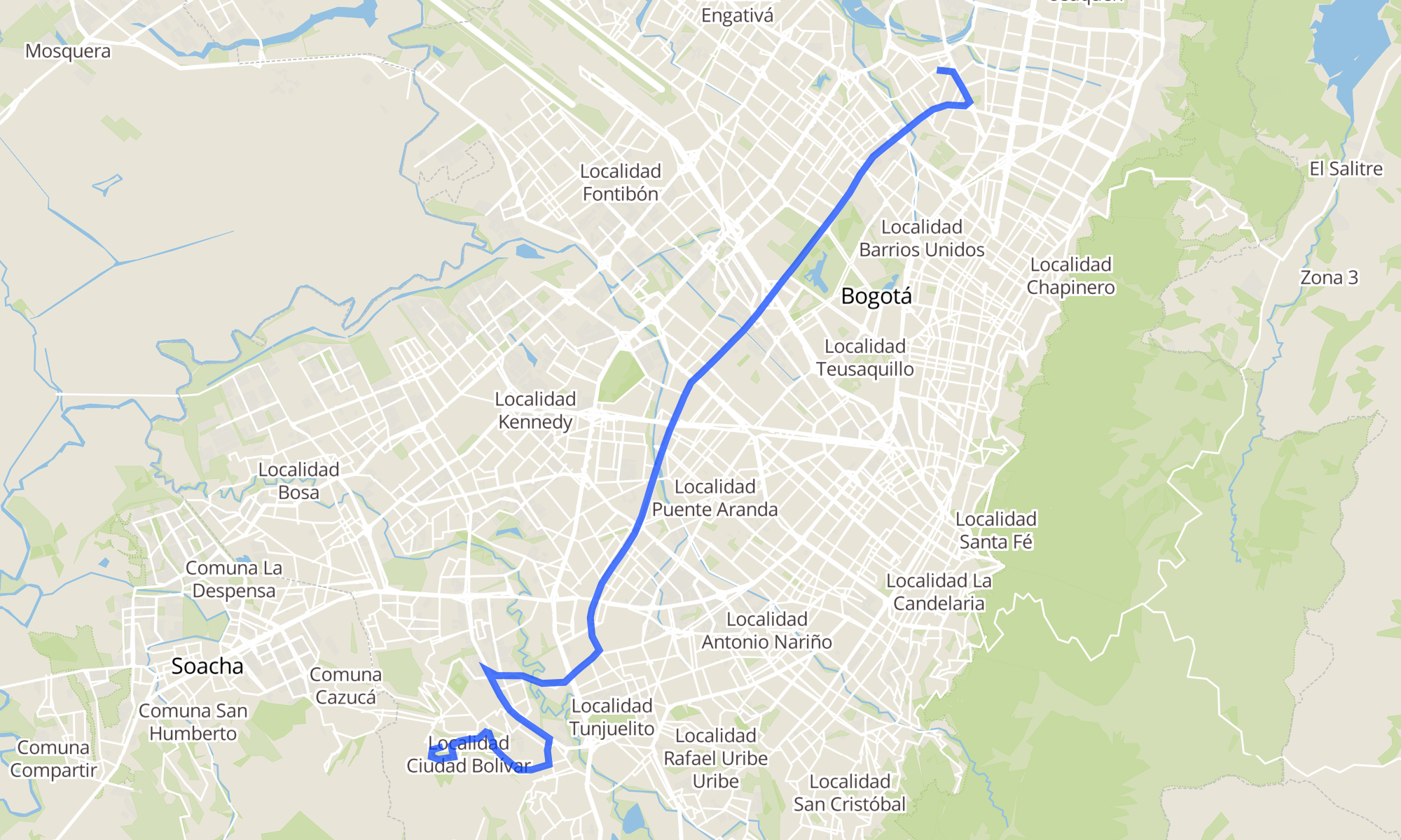 | Avenida Morato (Ak 70 - Cl 106) | Br. Jerusalén Las Brisas (Kr 40 - Cl 76 Sur) |