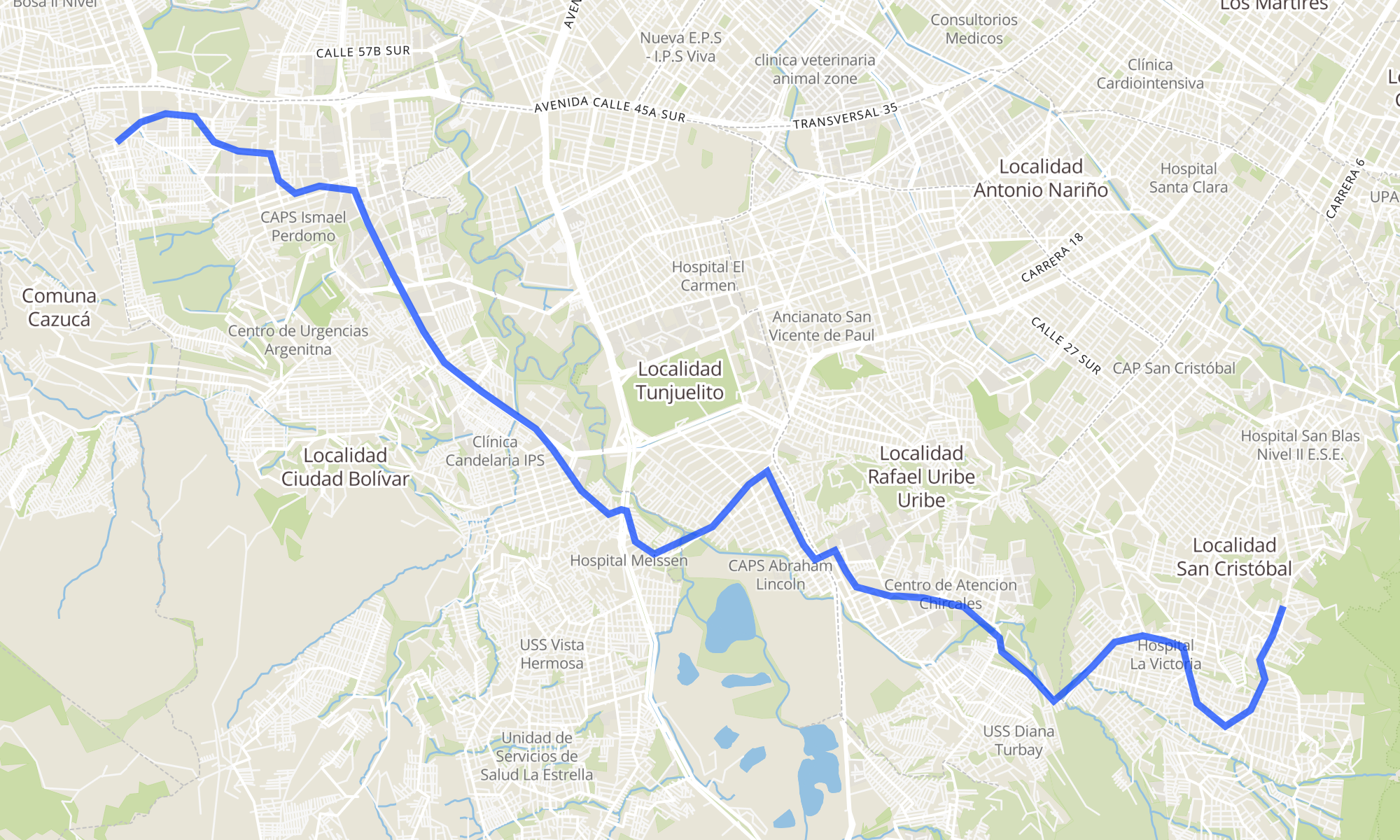 | Urbanización San Vicente (Av. Circunvalar - Cl 33 Sur) | Br. Primavera II (Cl 59a Sur - Kr 76a) |