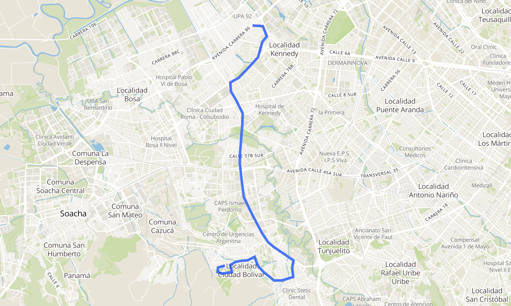 | Br. María Paz (Av. C. De Cali - Cl 1a Sur) (A) | Br. Jerusalén Las Brisas (Kr 40 - Cl 76 Sur) |