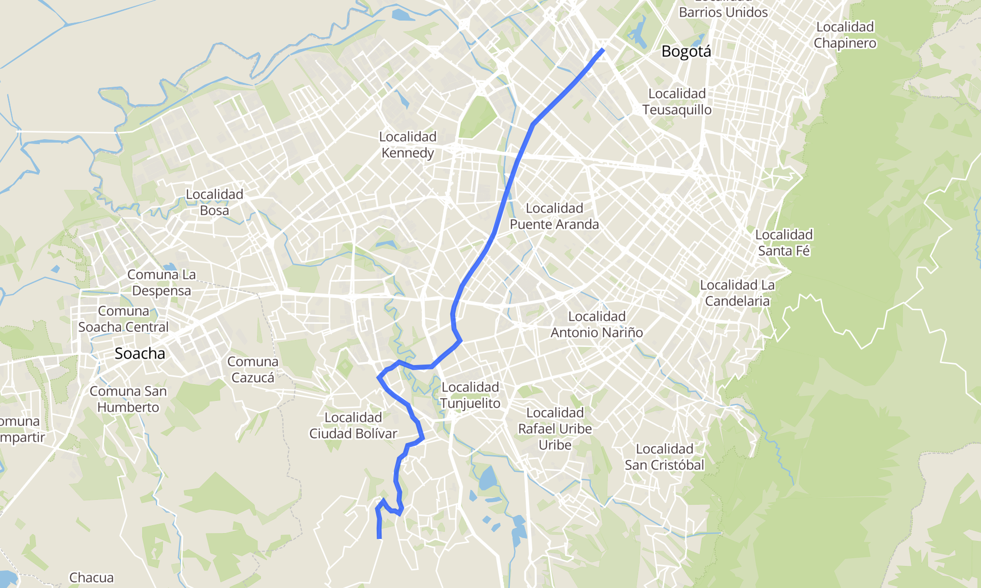Sentido: Avenida Carrera 68 (Ac 26 - Ak 68) ‎→ Br. Cordillera Del Sur (Dg 77 Sur - Kr 25a) (59 paradas)