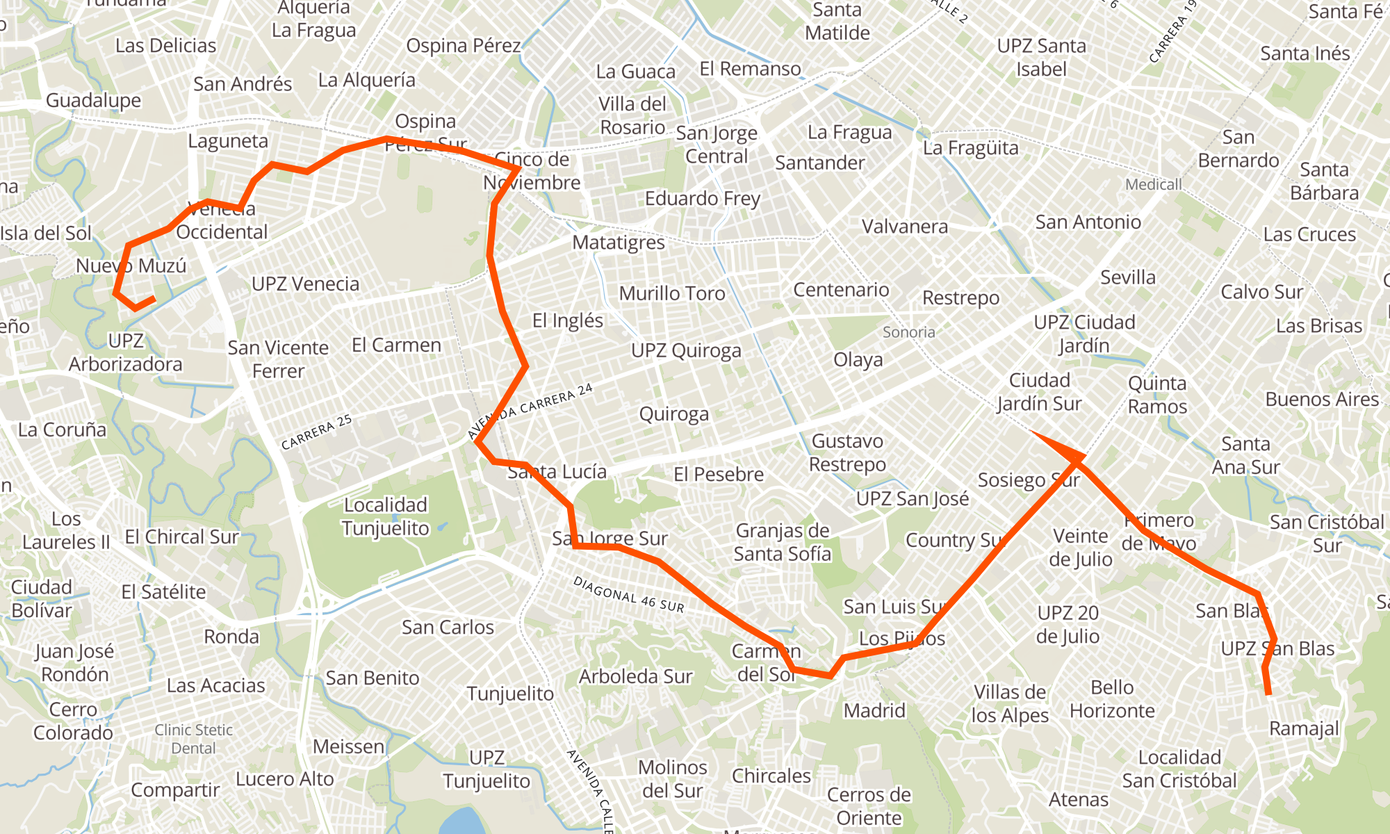 | Ied José Acevedo Y Gómez (Tv 4 Este - Dg 28 Bis B Sur) | Polideportivo Nuevo Muzú (Kr 61b - Dg 52b Sur) |