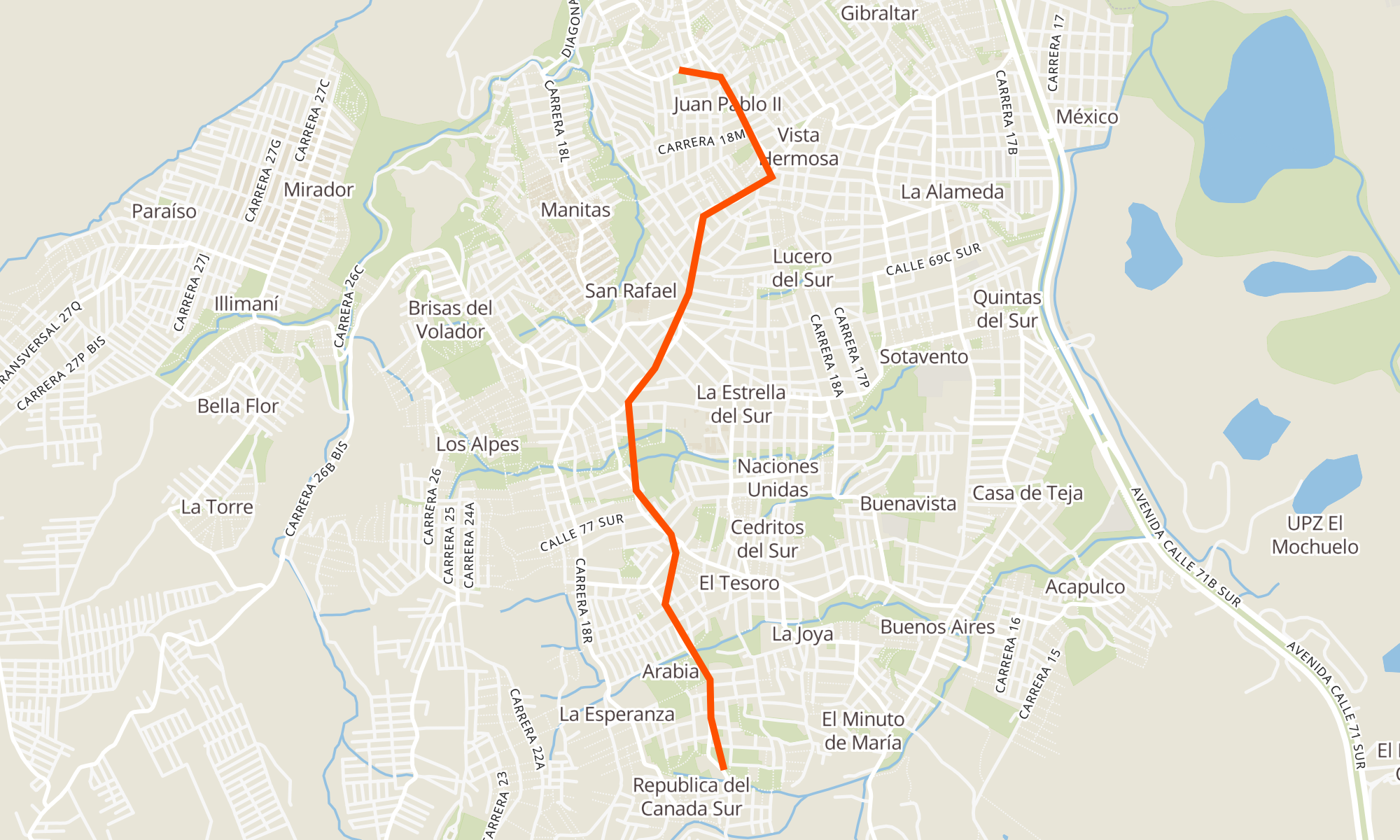 | Br. Arabia (Kr 18g - Cl 81g Sur) | Br. Juan Pablo II (Kr 18q - Dg 68a Sur) |