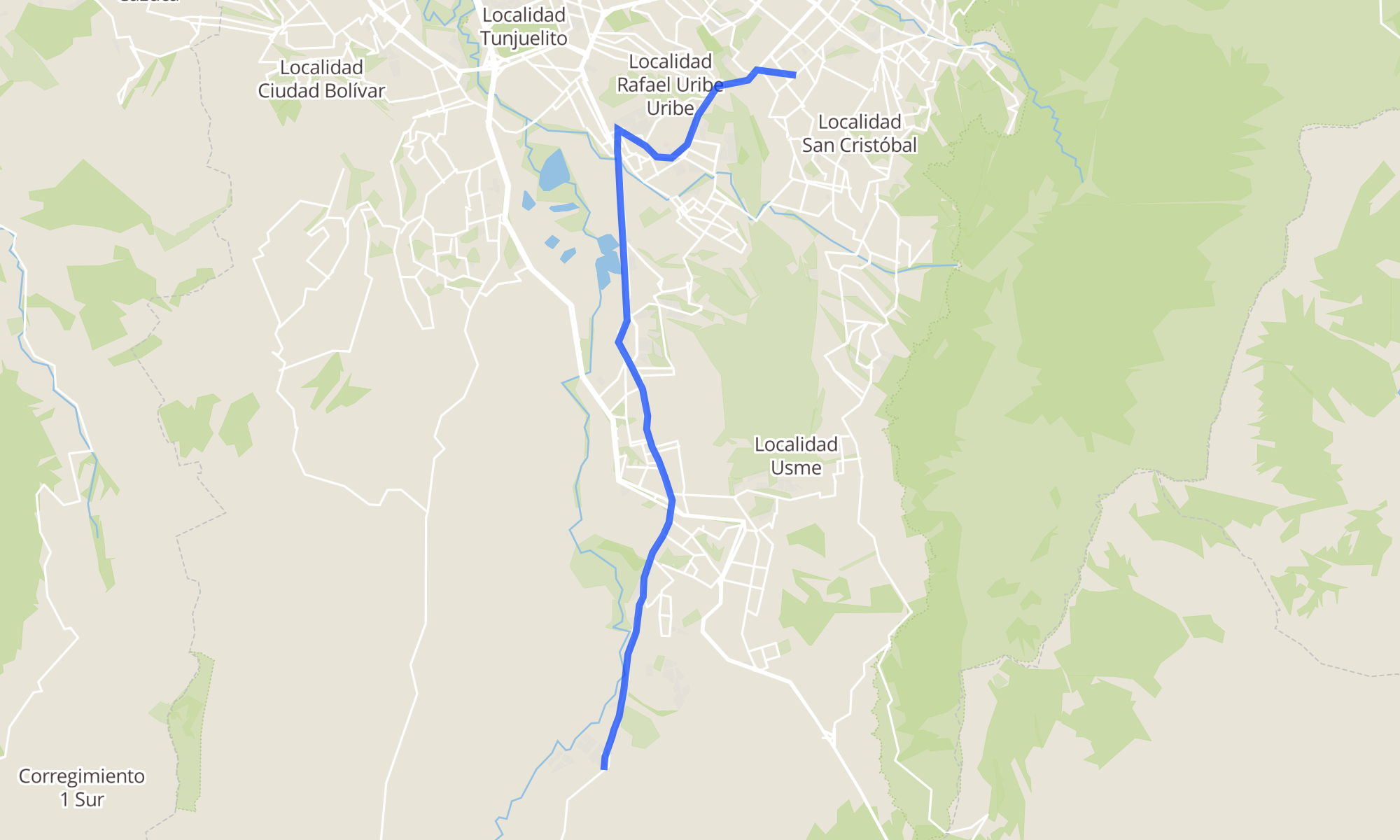 | Portal 20 De Julio (Kr 5 - Cl 31 Sur) | Plaza Central De Usme (Kr 14 - Cl 137 Sur) |