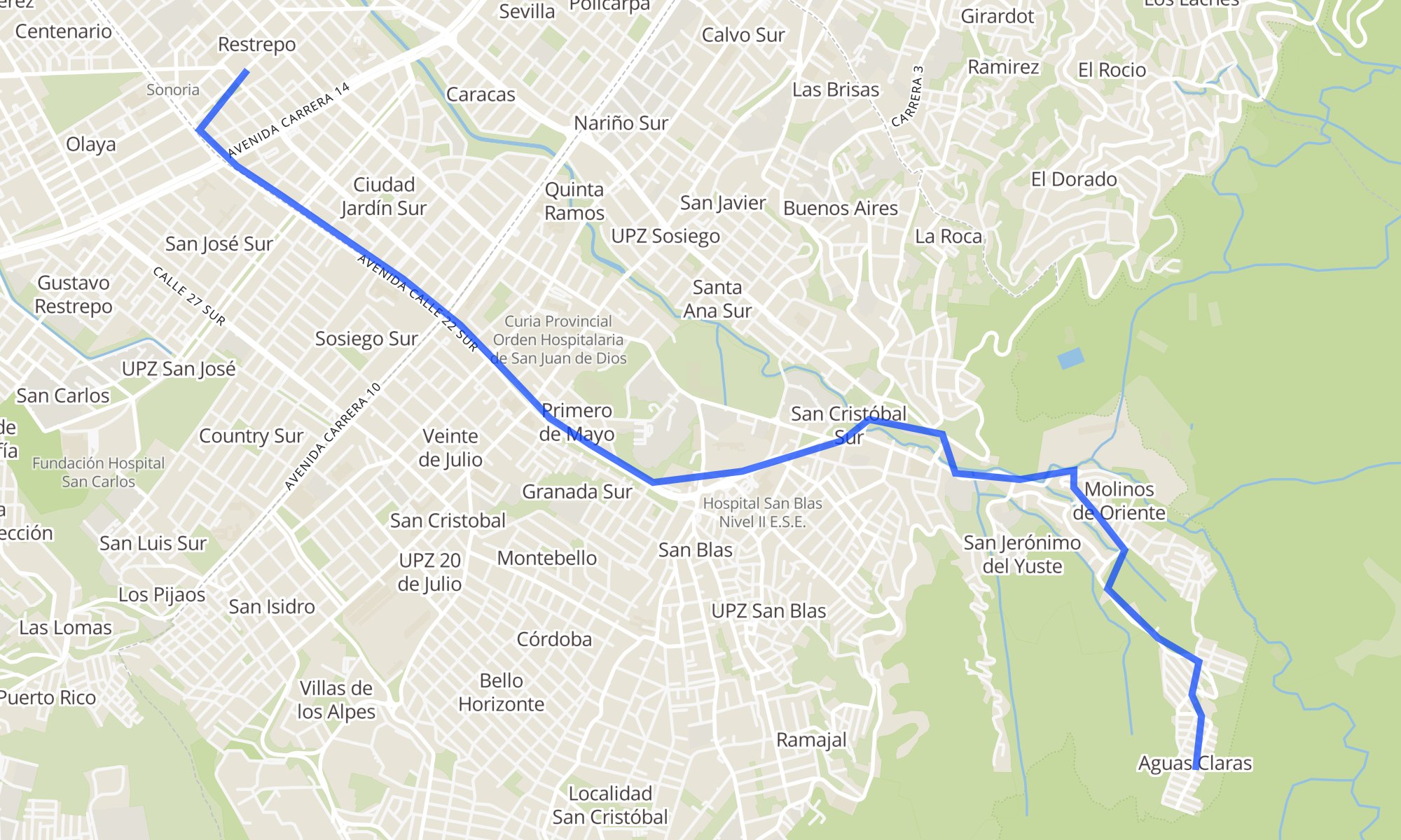 Br. Aguas Claras (Kr 25a Este - Cl 23 Sur)Br. Restrepo (Kr 18 - Cl 18 Sur) (A)