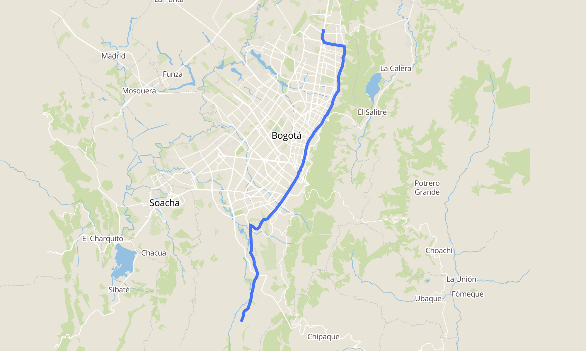 Sentido: Centro Comercial Santafé (Auto Norte - Cl 187) (A) ‎→ Parada Rural (Vía Usme - Sumapaz) (120 paradas)