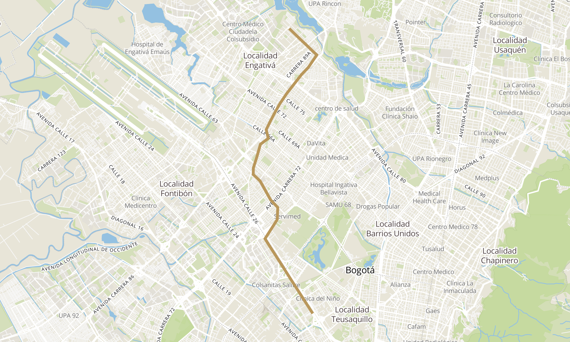 | Br. Ciudad Bachué I Etapa (Ac 90 - Kr 95f) (A) | Estación Gobernación (Ac 26 - Kr 51) |