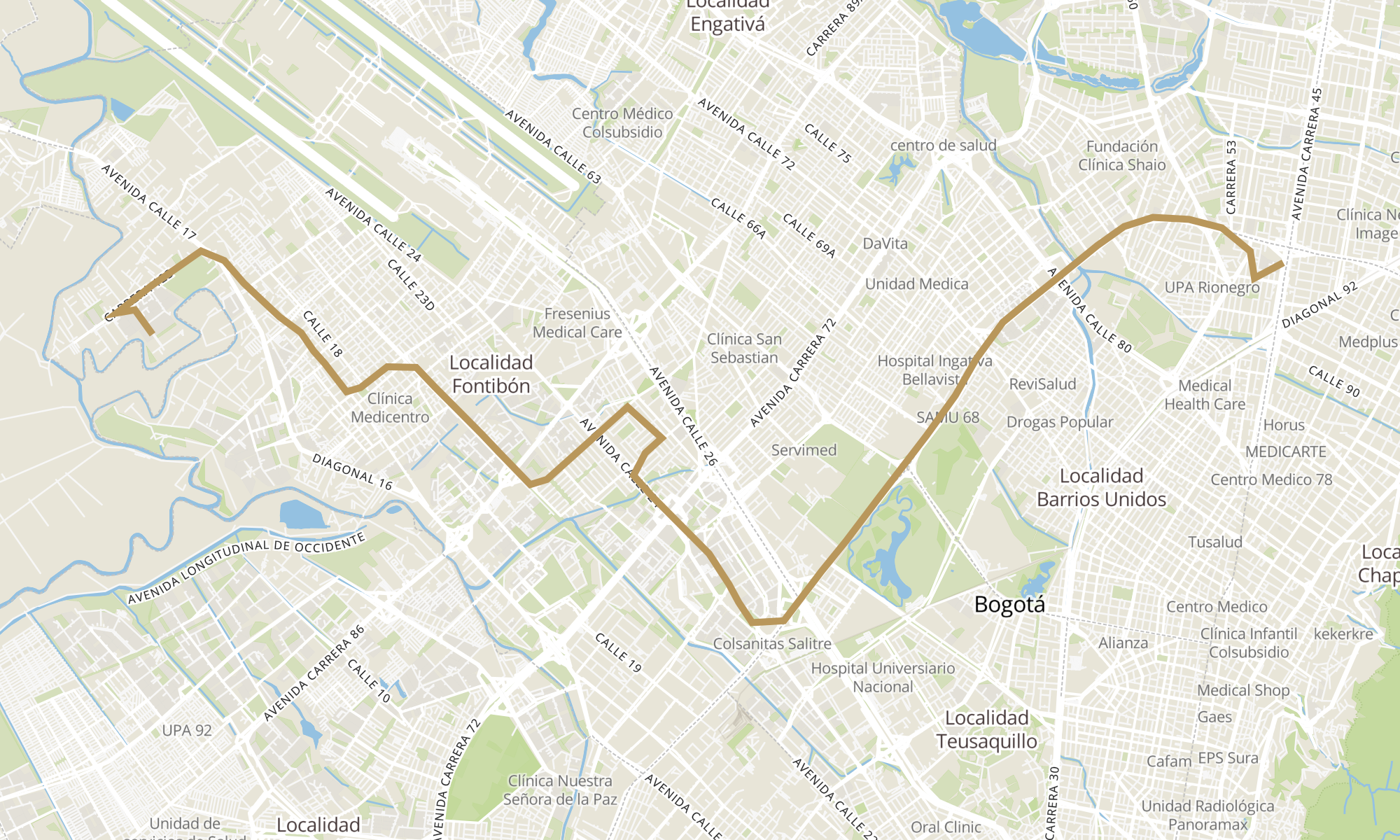 | Estación Calle 100 - Marketmedios (Auto Norte - Cl 95) | Br. Recodo (Cl 14b - Kr 117) |