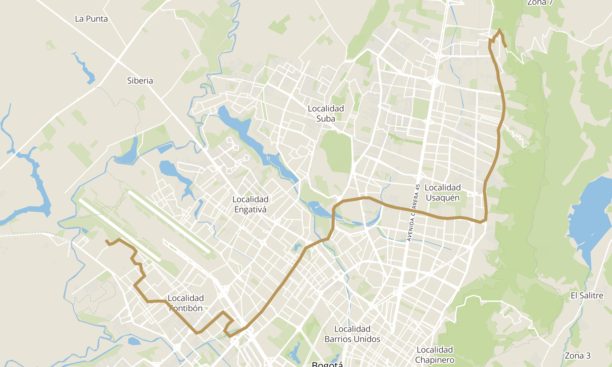| Br. Horizontes Norte (Kr 2 Este - Cl 182c) | Br. Las Brisas (Kr 130 - Cl 22a) |