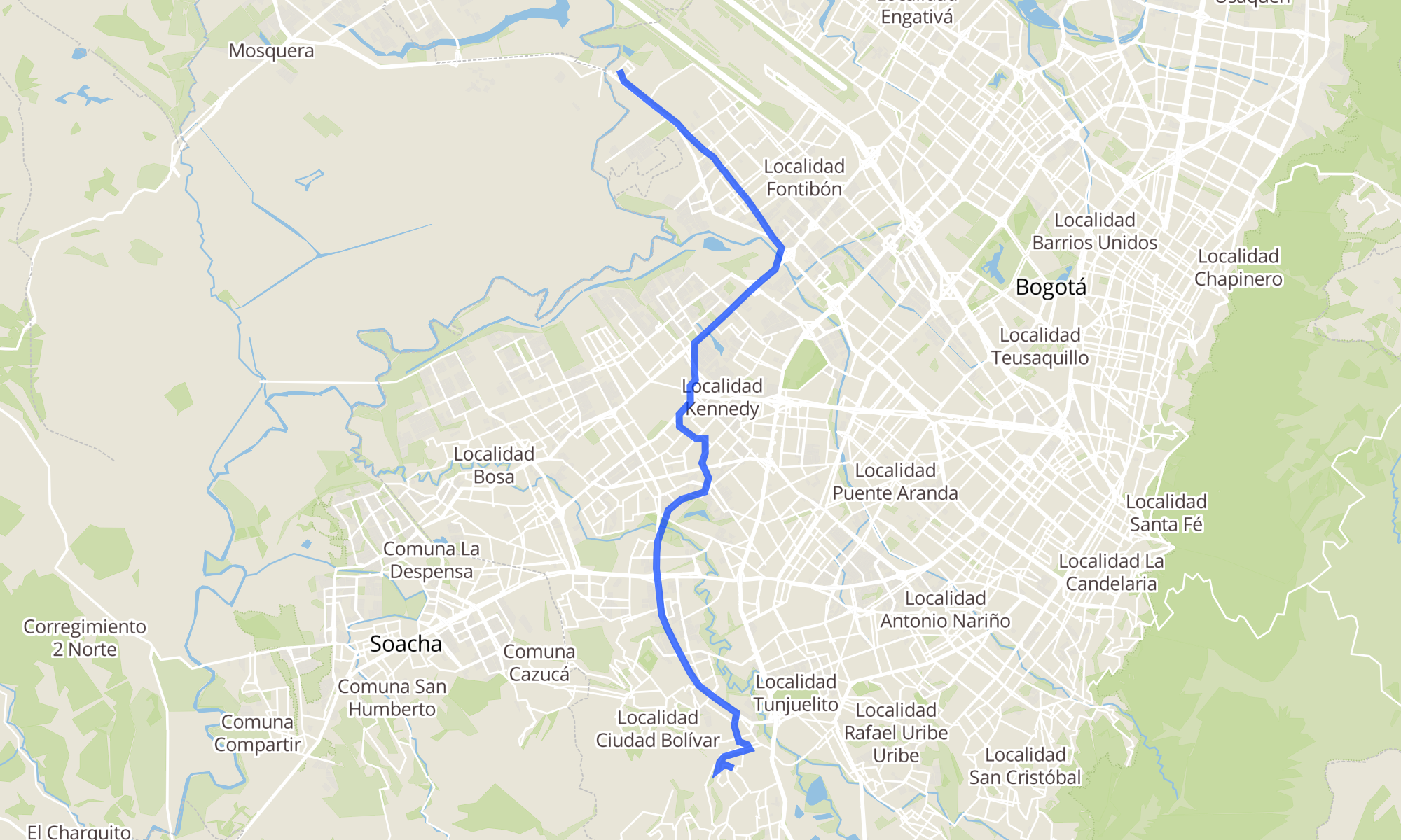 Sentido: Br. Las Delicias Del Sur (Kr 18z - Cl 66a Sur) ‎→ Calle 17a (Kr 137a - Cl 17a) (61 paradas)