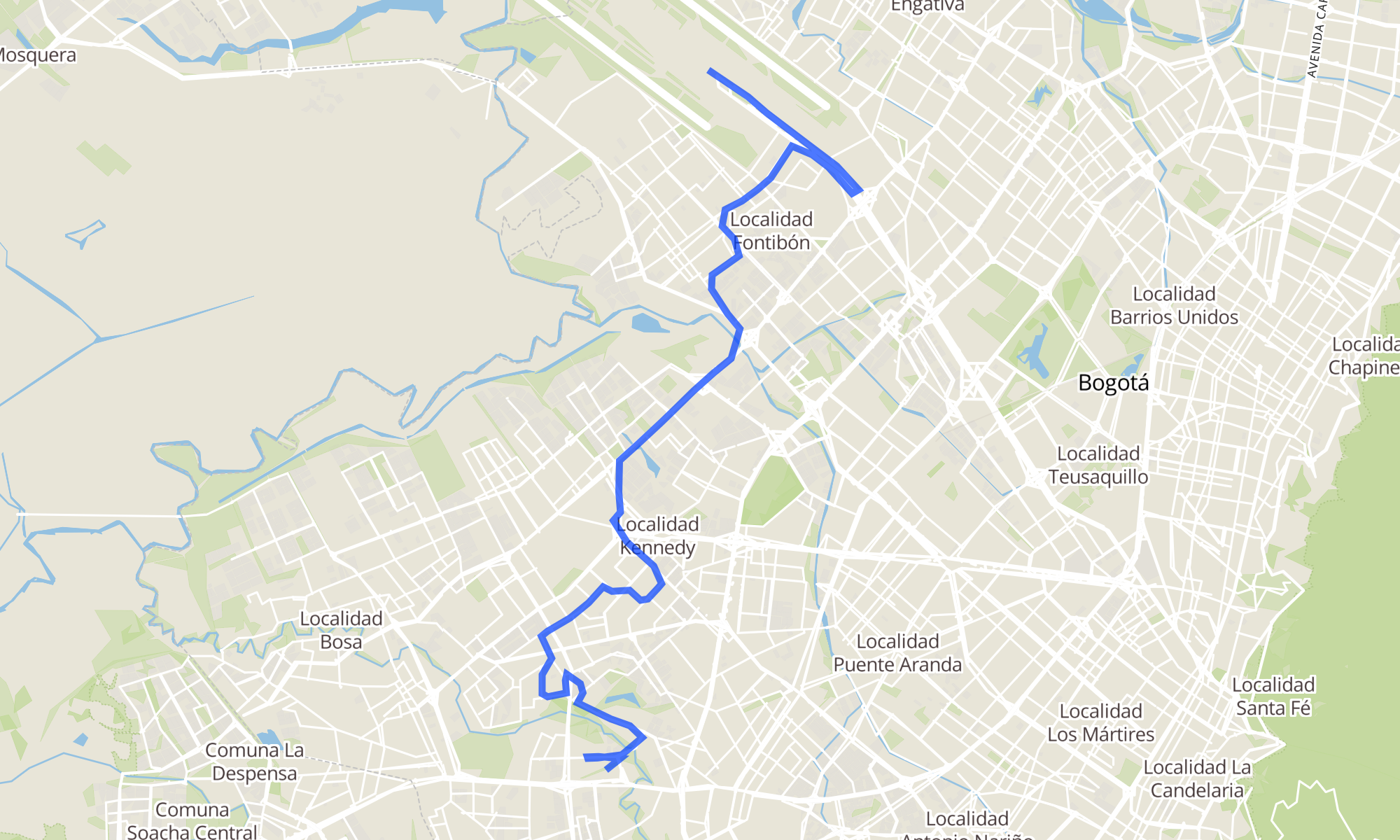 Sentido: Patio Guadalupe (Dg 67c Sur - Kr 64b) ‎→ Aeropuerto Eldorado (F) (68 paradas)