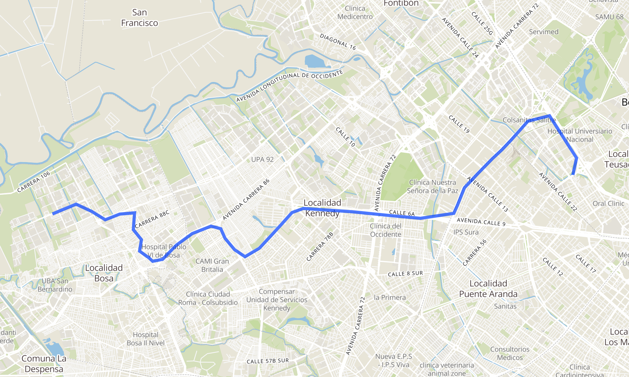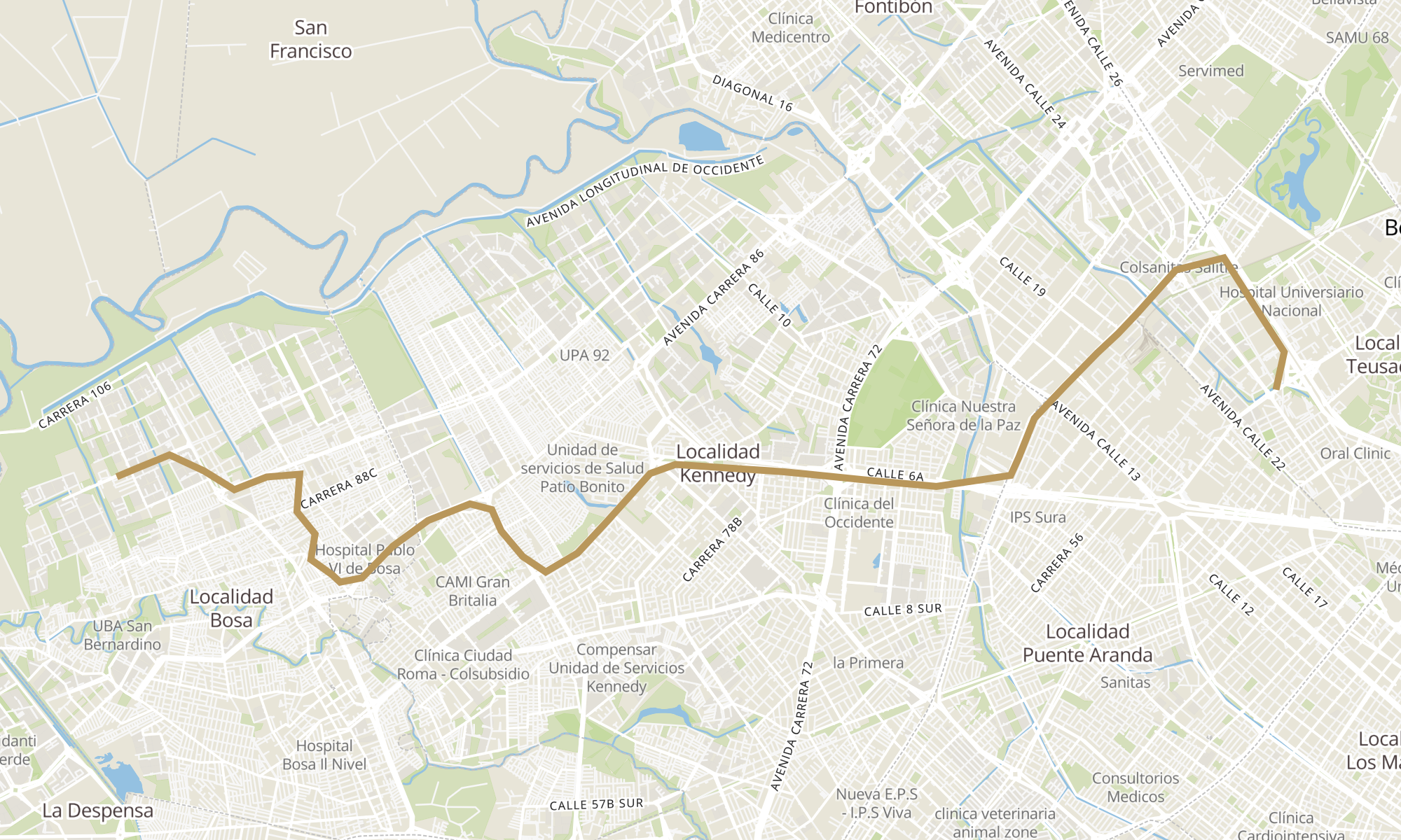 | Br. San Bernardino XIX (Kr 95a - Cl 75a Sur) (B) | Embajada De Los Estados Unidos (Ak 50 - Cl 24b) |