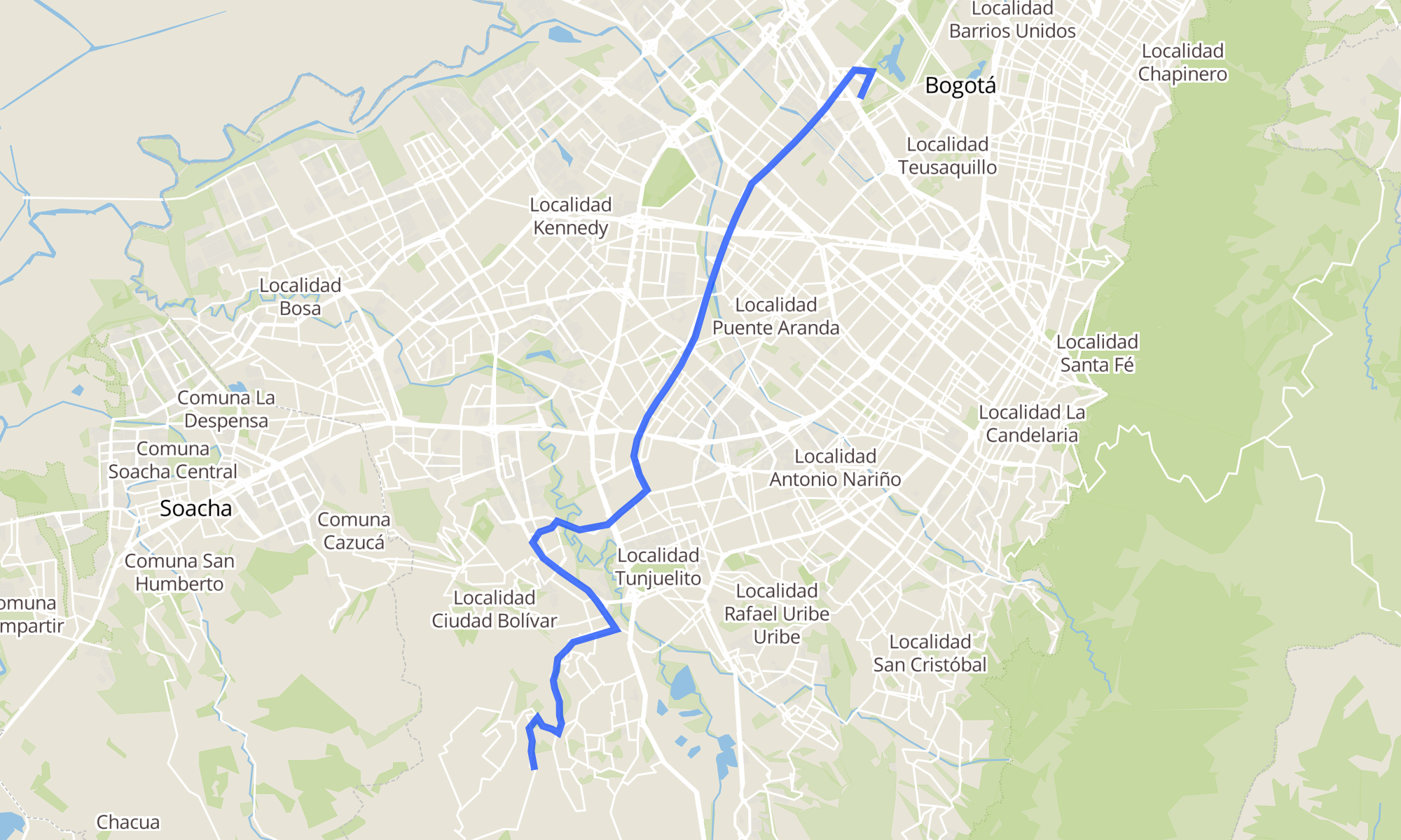 | Br. Cordilleras Del Sur (Dg 77 Sur - Kr 25) (B) | Br. Salitre El Greco (Kr 66a - Cl 41a) |