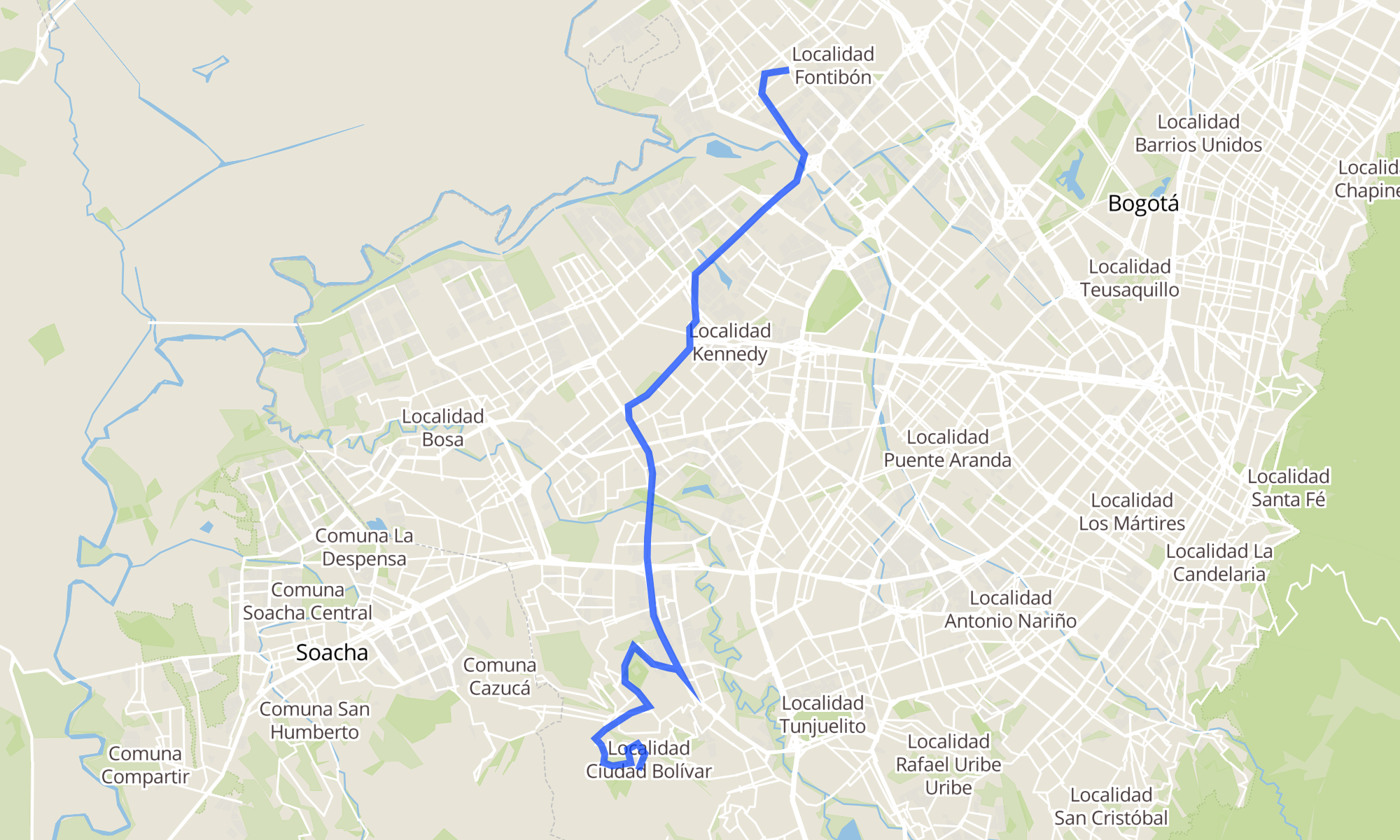 | Br. Arborizadora Alta (Cl 72f Sur - Kr 35) | Br. Villemar (Kr 97 - Cl 21) |