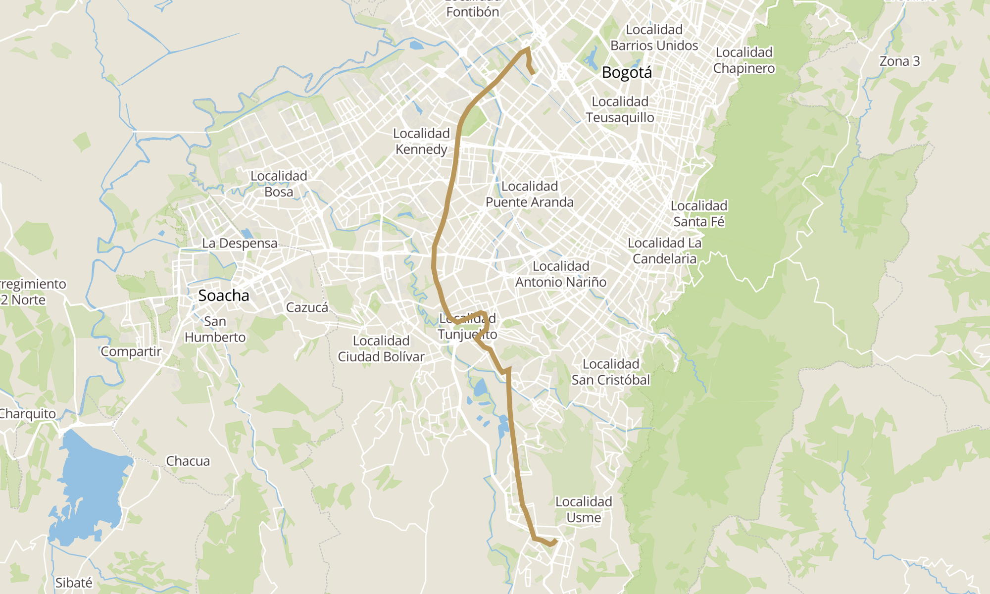 | Br. El Líbano (Cl 87b Sur - Tv 2c) | Terminal De Transporte (Cl 22c - Kr 68f) |