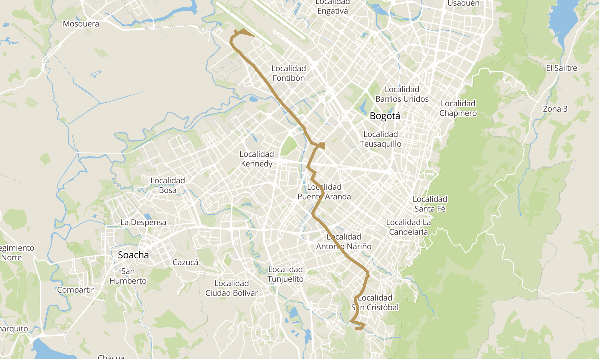 | Br. Canadá La Güirá (Kr 2 Este - Cl 47b Sur) | Br. Las Brisas (Kr 130 - Cl 22a) |