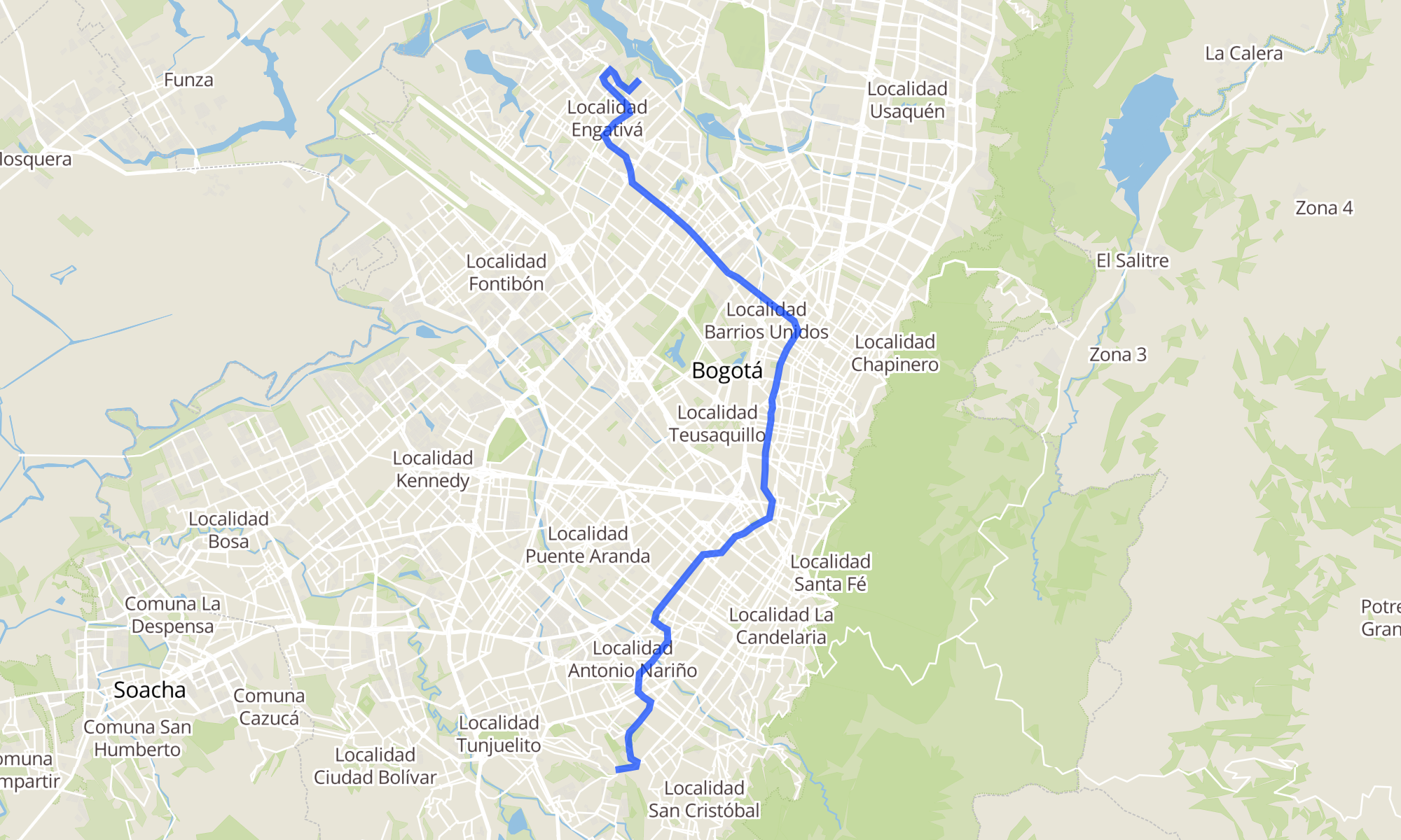 | Br. Ciudad Bachué (Kr 95g - Cl 89) (B) | Br. Las Lomas (Tv 11a - Dg 38g Sur) |