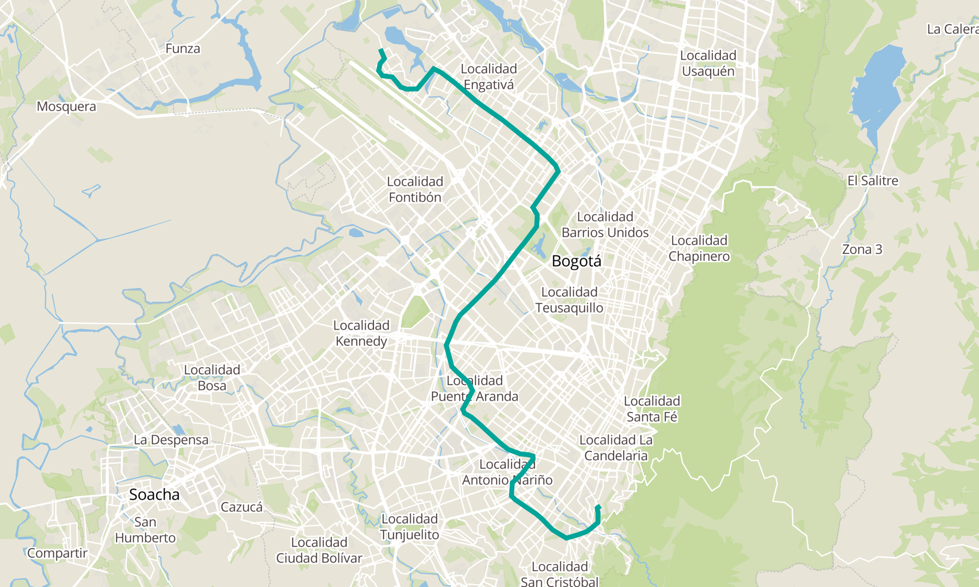 | Br. La Tortigua (Cl 64 - Kr 126a) | Br. Vitelma - Ciudadela Parque De La Roca (Cl 3 Sur - Kr 4a Este) |