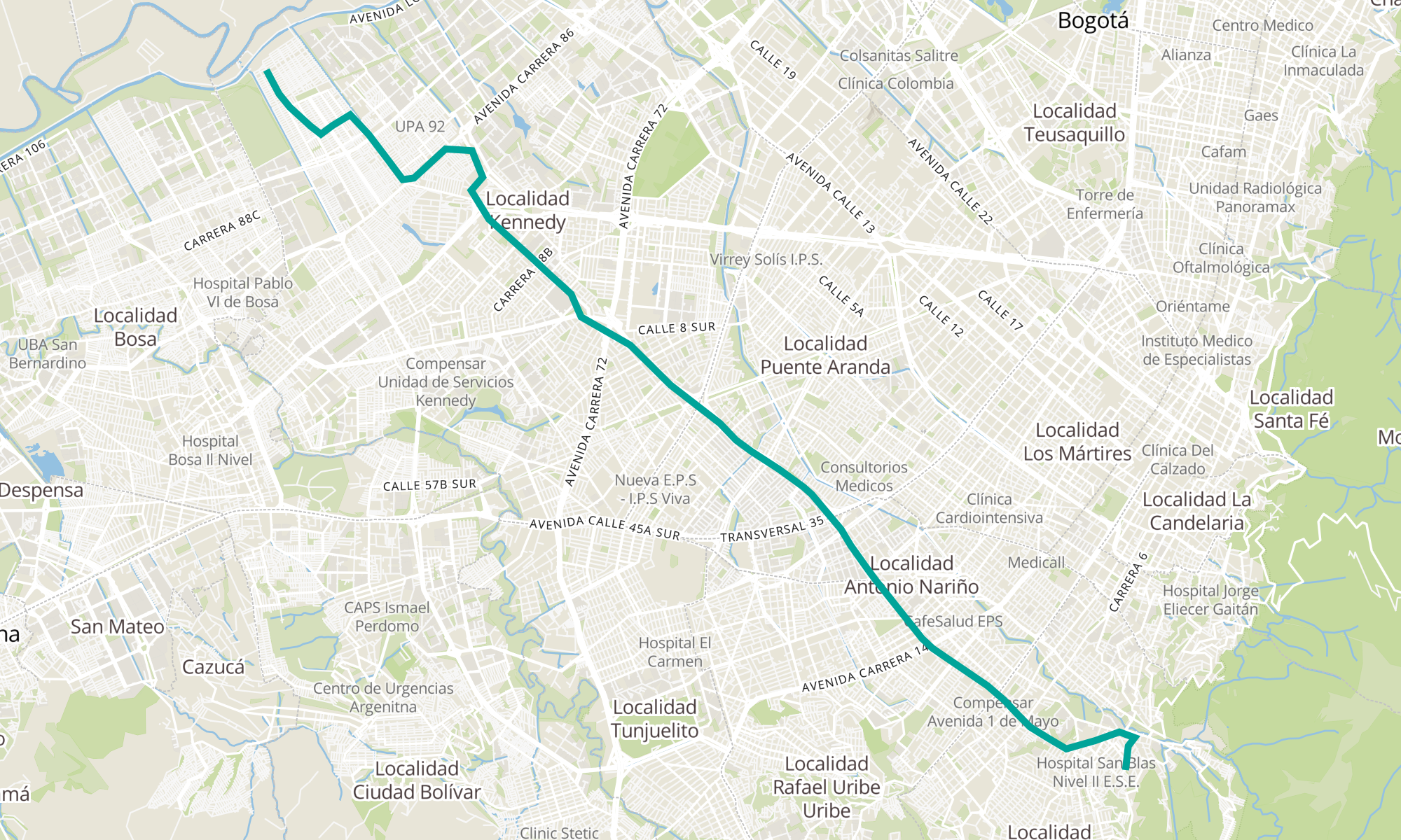 | Br. Jazmín Occidental (Cl 42f Sur - Kr 99c) | Br. La Castaña (Kr 7c Este - Cl 16a Bis Sur) |
