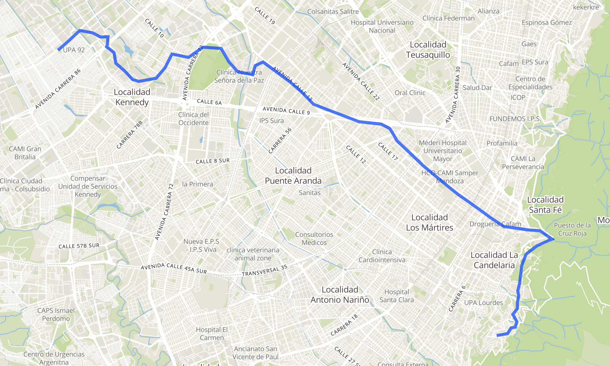 | Br. Campo Hermoso (Av. Tintal - Cl 26 Sur) | Ied Aulas Colombianas San Luis (Kr 11 Este - Cl 1b) |