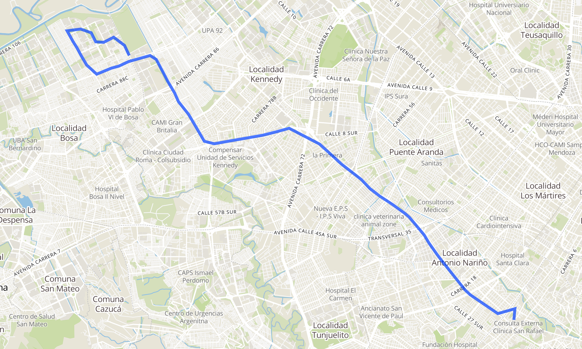 | Br. Las Margaritas (Cl 49 Sur - Kr 90a) | Batallón José María Rosillo (Kr 8 - Cl 19 Sur) |