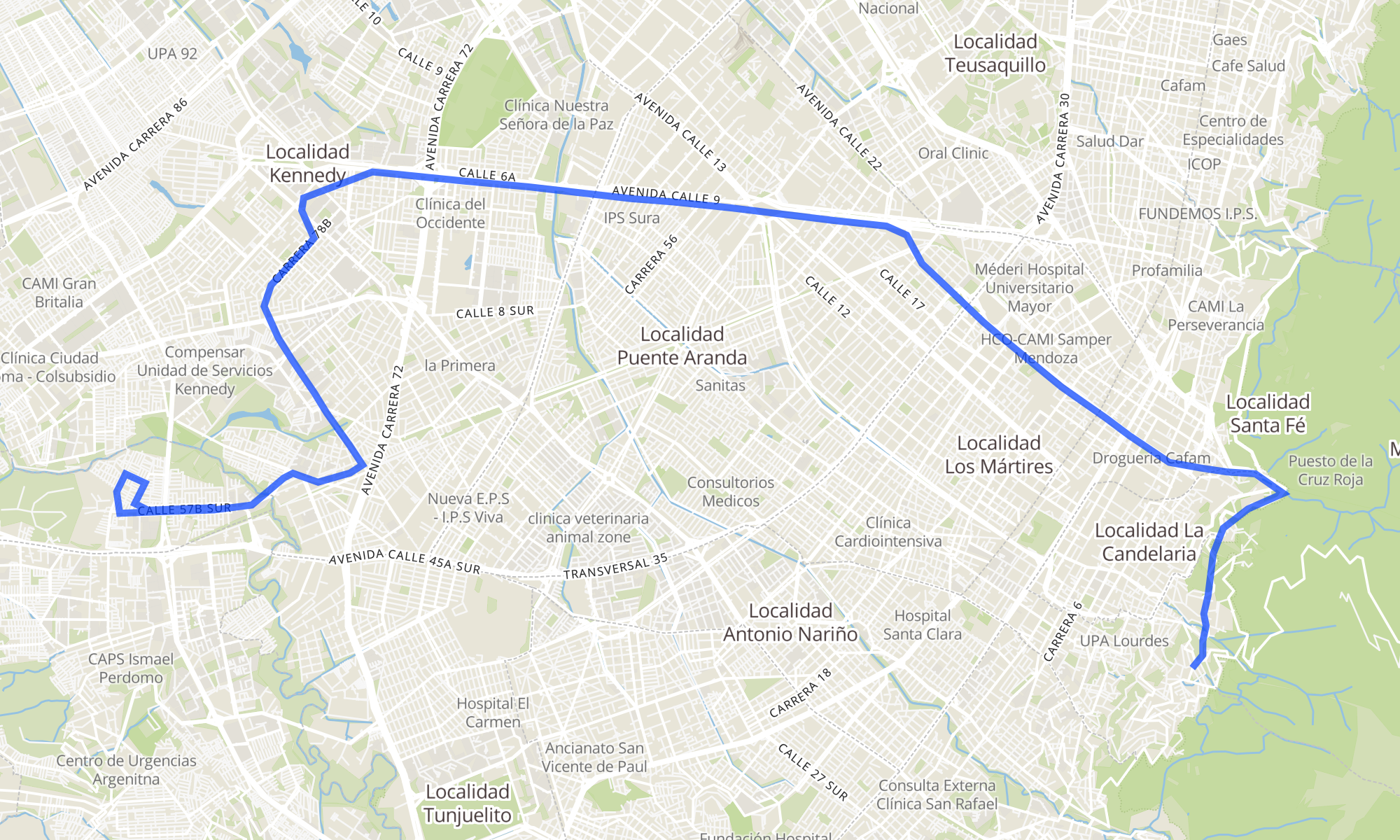 | Br. Villa Del Río (Cl 57b Sur - Kr 64b) | Cai Laches (Dg 3c - Kr 8 Este) |