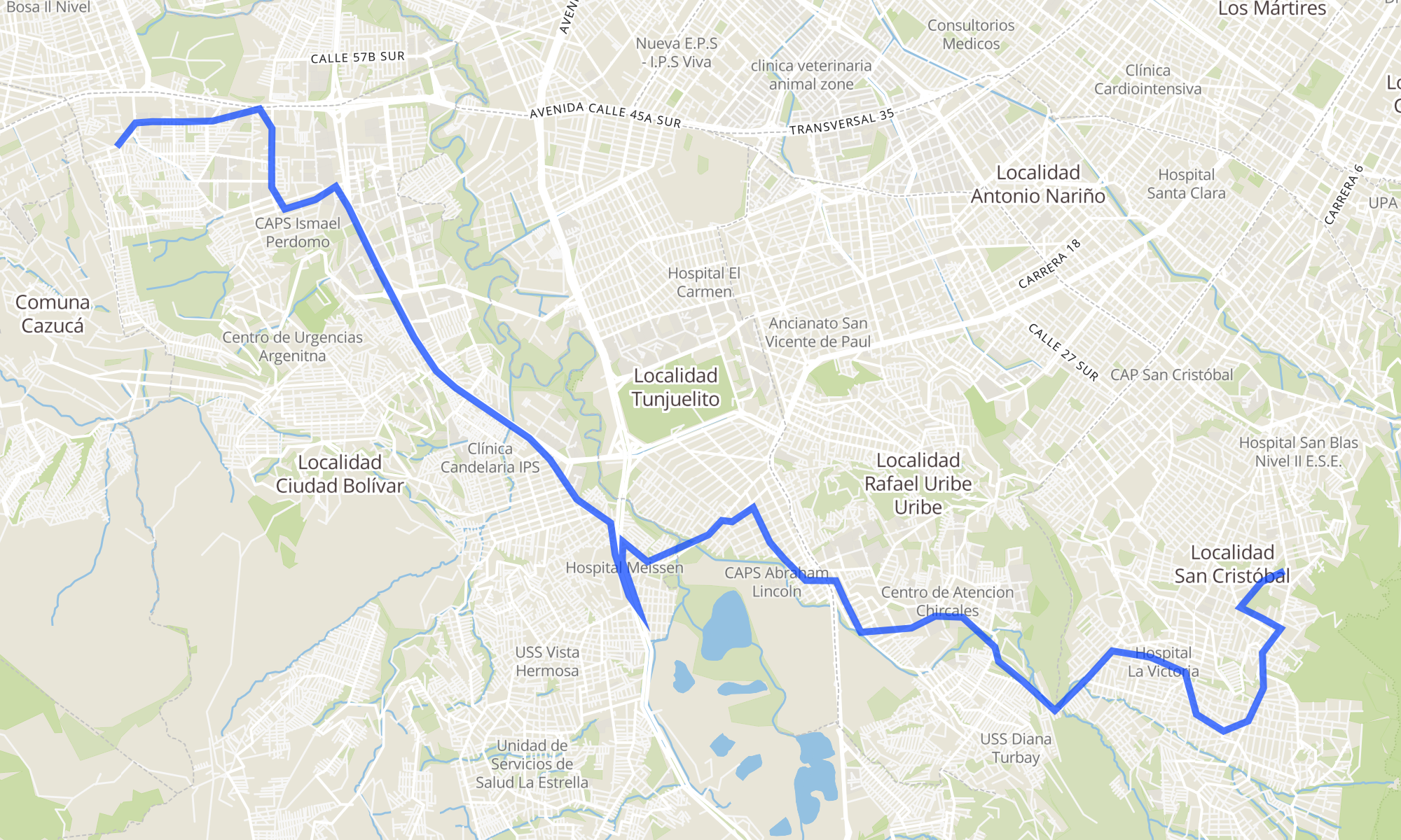 | Br. Quiba (Kr 76a - Cl 59a Sur) | Br. Sidel - Terrazas De Oriente (Kr 9b Este - Cl 32b Sur) |