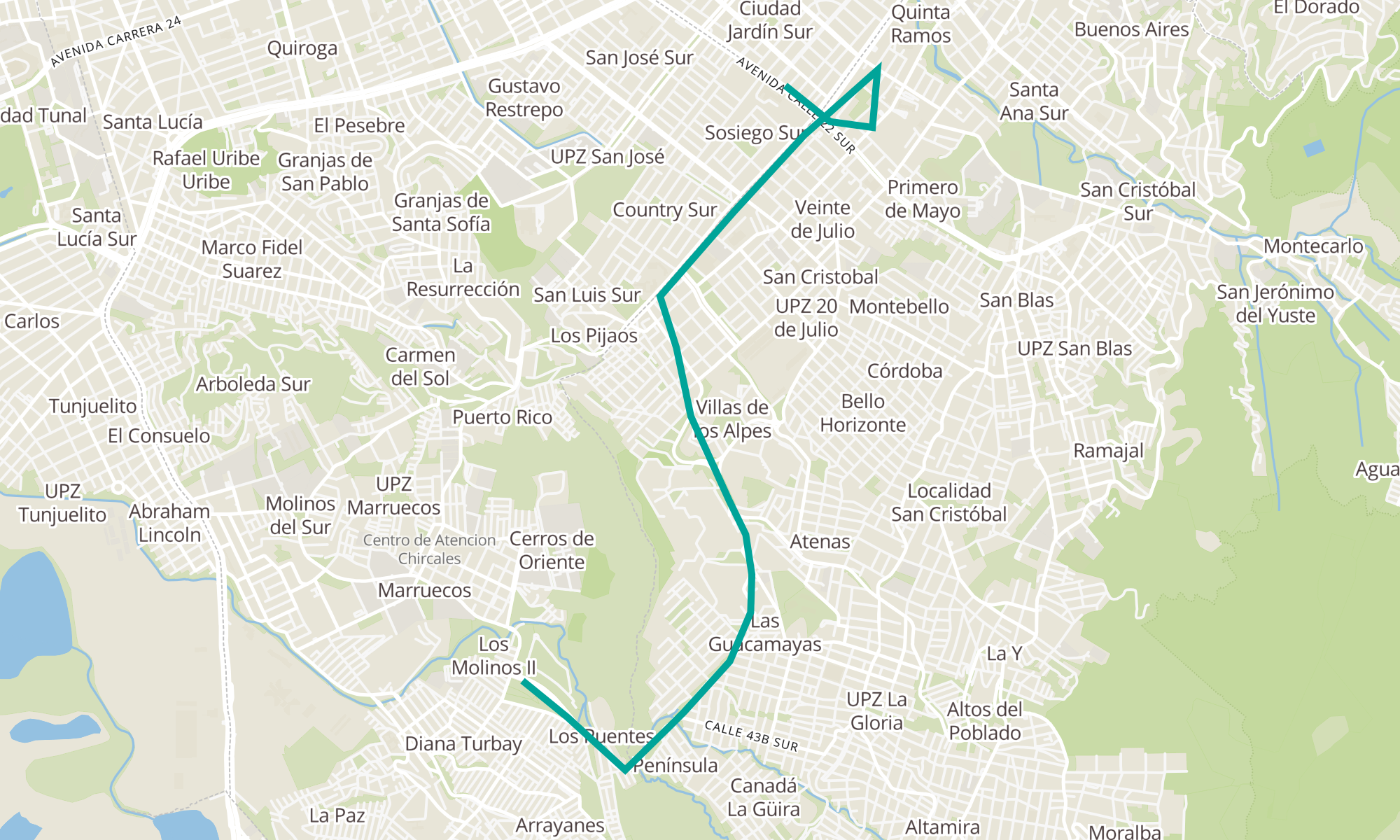 | Br. Los Molinos II Sector (Cl 48q Bis Sur - Kr 4) | Br. Ciudad Jardín Sur (Av. 1 De Mayo - Kr 10b) (A) |