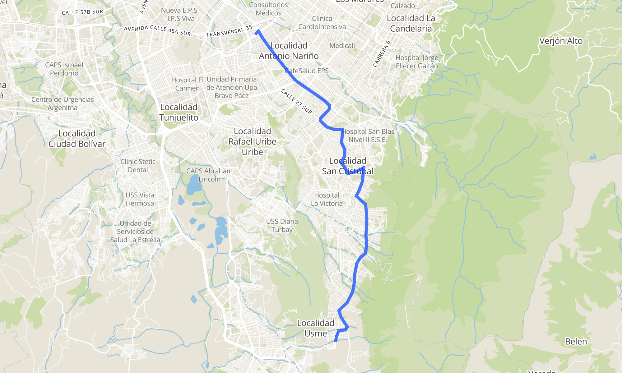 Sentido: Br. Eduardo Frei (Av. NQS - Cl 27a Sur) ‎→ Br. Doña Liliana (Carrera 12c Este - Calle 78 Sur) (51 paradas)