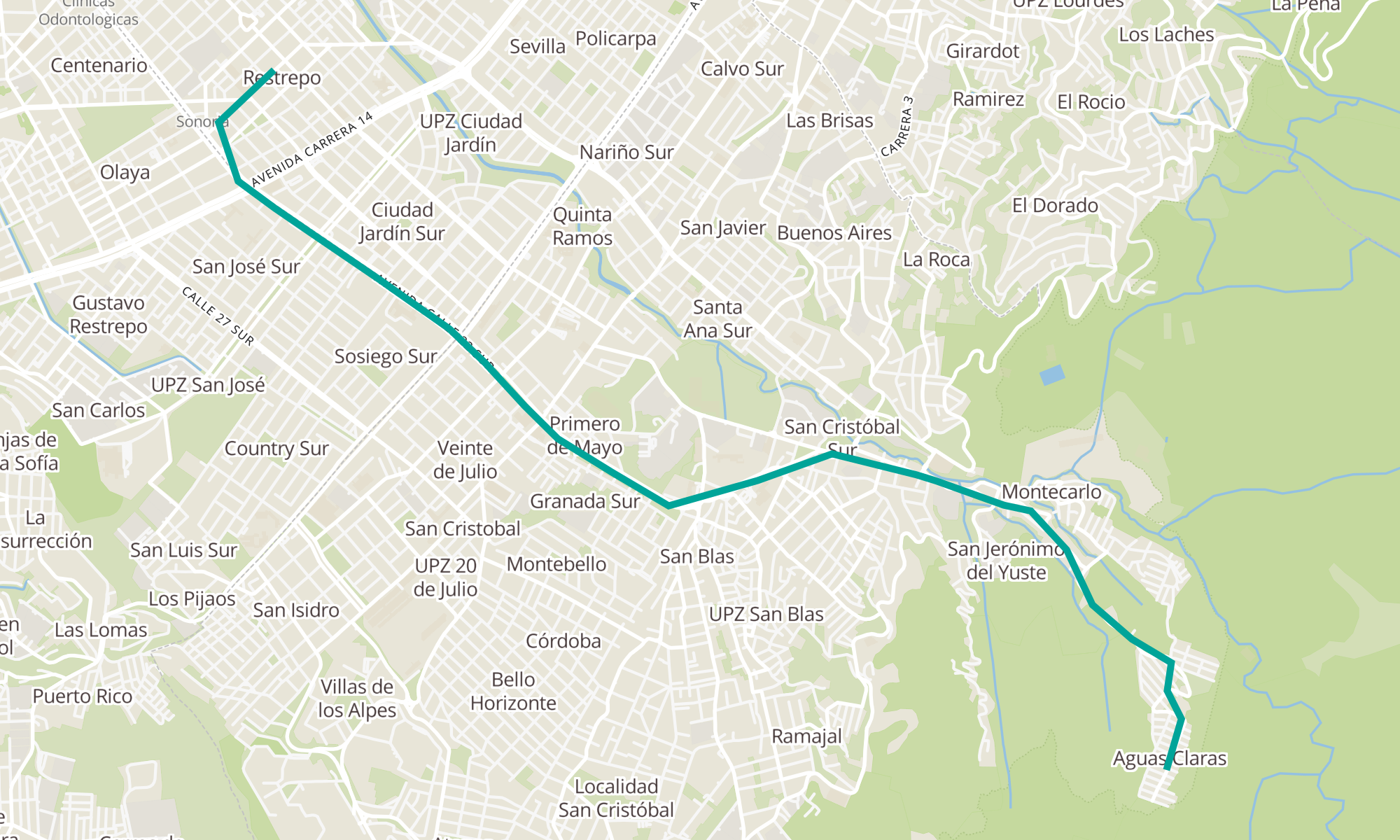 | Br. Restrepo (Kr 19 - Cl 17 Sur) | Br. Aguas Claras (Kr 25a Este - Cl 23 Sur) |